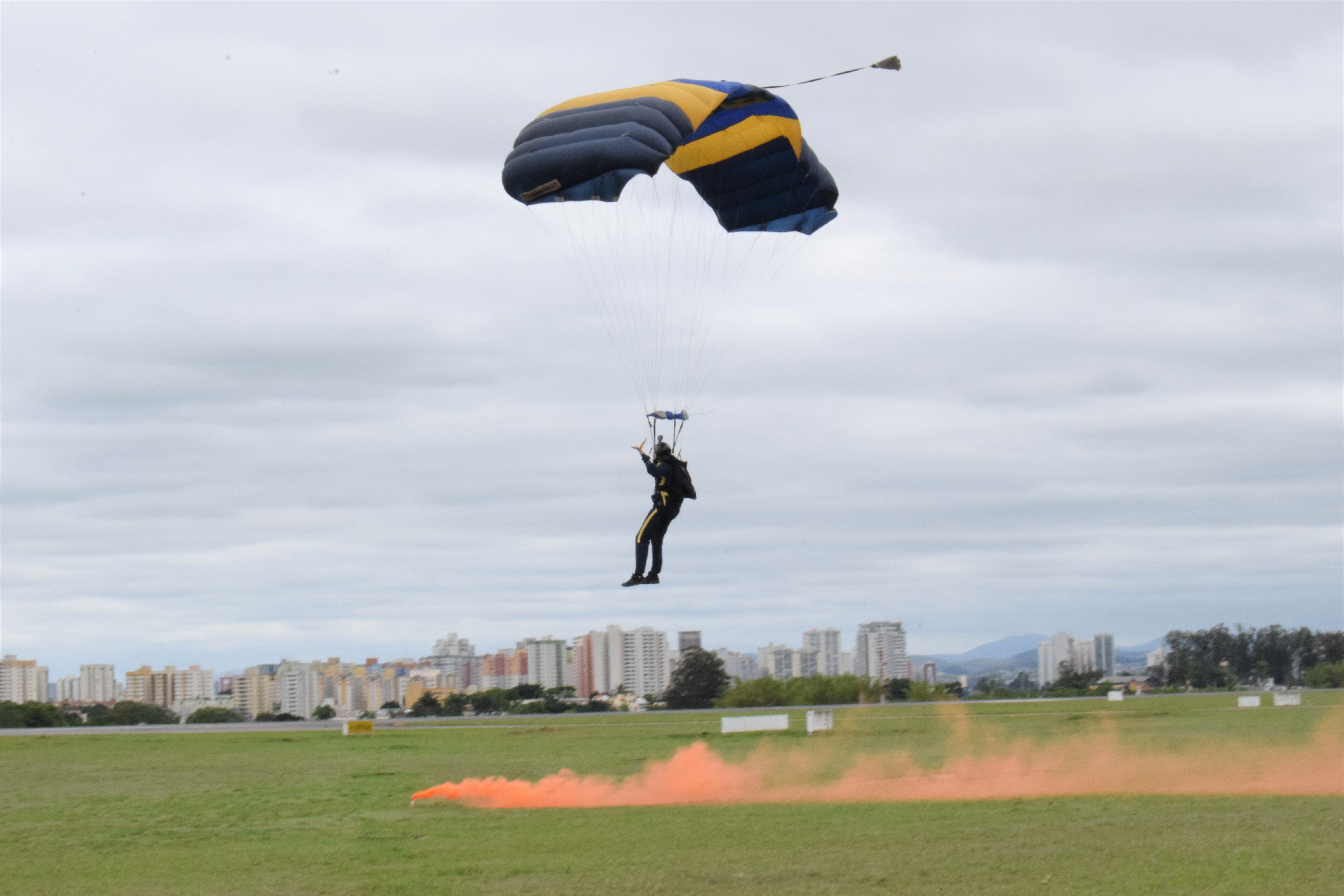 Às 10h20, os paraquedistas da Equipe Falcões decolaram no C-95 Bandeirante. Para o Major Infante Michel Marconi Hakime de Andrade Ramos, Líder da equipe, o salto no evento é uma oportunidade de “fazer despertar o apreço e o encanto pelo serviço militar, incentivando a busca pelas nossas escolas de formação”.