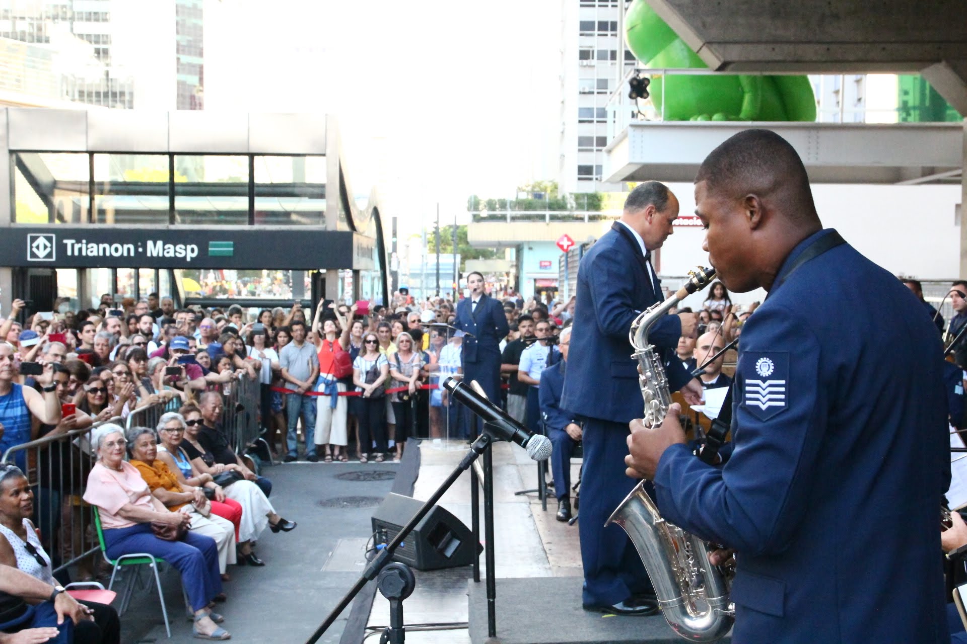 Encerrando o espetáculo, a banda executou dois grandes sucessos do célebre paulista Adoniran Barbosa – Tiro ao Álvaro e Trem das Onze. Assim, cantando em alto e bom som a música de encerramento, despediram-se mutuamente a Banda de Música e o público presente na Avenida Paulista. Para o Diretor-Geral do Departamento de Ciência e Tecnologia Aeroespacial (DCTA), Tenente-Brigadeiro do Ar Luiz Fernando de Aguiar, “foi uma honra e uma responsabilidade imensa ter a nossa Banda de Música representando a Força Aérea Brasileira em um evento dessa magnitude, em um local tão privilegiado como a Avenida Paulista”, ressaltou o Oficial General.