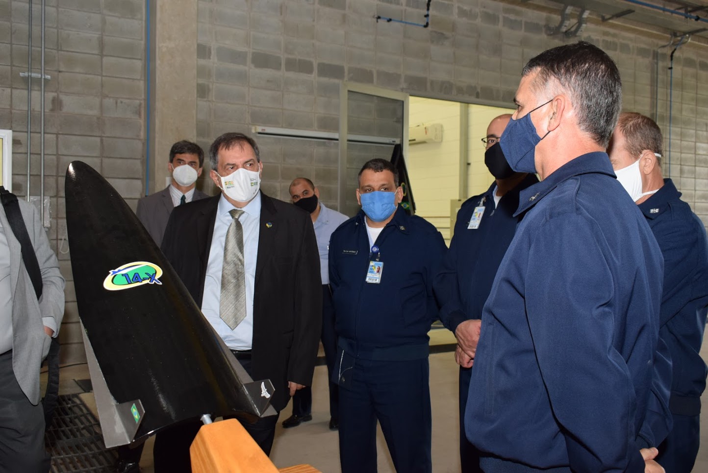 A comitiva foi recepcionada pelo Diretor-Geral do DCTA, Major-Brigadeiro do Ar Hudson Costa Potiguara, no Memorial Aeroespacial Brasileiro (MAB). Participaram da acolhida o Reitor do Instituto Tecnológico de Aeronáutica (ITA), Professor Doutor Anderson Ribeiro Correia, o Diretor do Instituto de Aeronáutica e Espaço (IAE), Brigadeiro Engenheiro César Demétrio Santos, e o Chefe do Subdepartamento Técnico do DCTA, Brigadeiro Engenheiro Augusto Luiz de Castro Otero. Dentre os visitantes, estiveram presentes o Secretário de Empreendedorismo e Inovação, Senhor Paulo Cezar Rezende de Carvalho Alvim, o Diretor de Tecnologias Aplicadas, Senhor Eduardo Soriano, o Coordenador-Geral de Tecnologias Estratégicas, Senhor Claudio Olany Alencar de Oliveira, o Coordenador de Inovação e Tecnologias Estratégicas, Senhor Fábio França Silva Araújo, e o Assessor Especial do Ministro Marcos Pontes, Senhor Márcio Nobre Migon.
