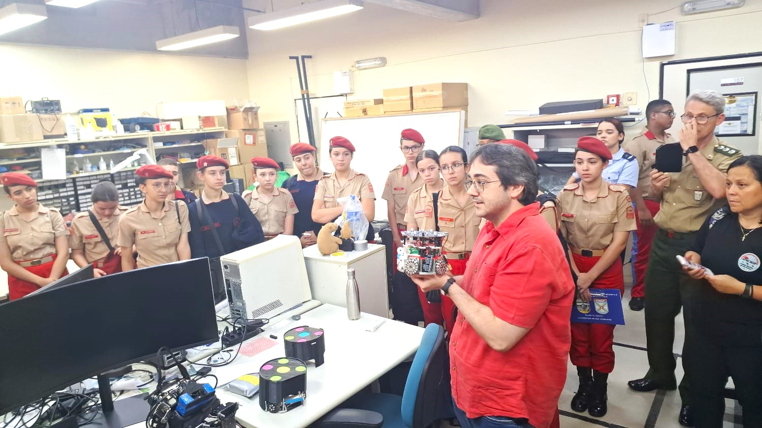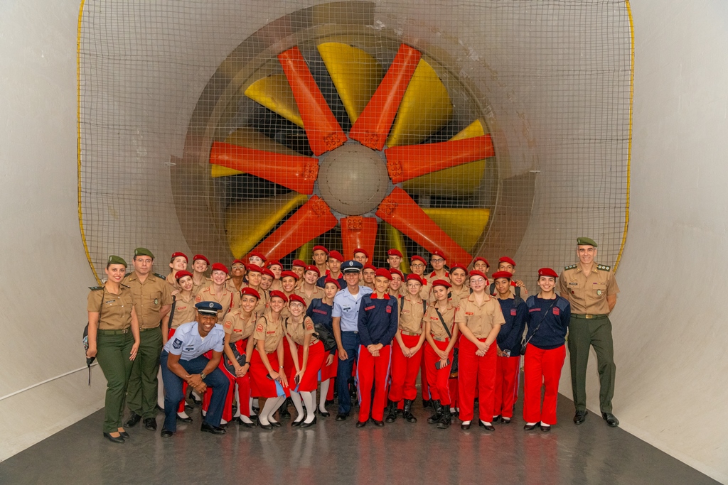 No dia 8 de outubro de 2024, o Departamento de Ciência e Tecnologia Aeroespacial (DCTA) recebeu a visita de aproximadamente 100 alunos do 9º ano do Colégio Militar do Estado de São Paulo (CMSP). Durante a visita, os alunos tiveram a oportunidade de conhecer projetos que despertam a vocação para a carreira nas Forças Armadas e preparam os jovens para o futuro. O Comandante do Corpo de Alunos do colégio, Coronel Alex Sandro Barboza Ribeiro, destacou a importância dessa experiência: “Foi um momento de lançar a semente. Muitos alunos viam o ITA como algo intangível, mas agora tiveram a chance de pisar neste solo sagrado e abrir seus horizontes.” Ele também compartilhou a empolgação de sua filha, que sonha em ser astrônoma, ressaltando: “O primeiro passo para ela é pensar no Instituto Tecnológico de Aeronáutica (ITA), e eu estou levando fotos para inspirá-la.”