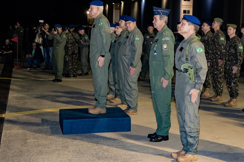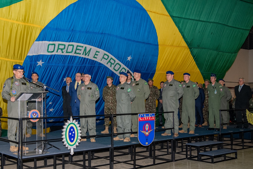 Durante a leitura da Ordem do Dia, o General Carvalho Lima, recordou figuras históricas e importantes para a evolução da Aviação do Exército e agradeceu ao espírito de cooperação e apreciação pelo trabalho em equipe da Marinha do Brasil (MB) e da Força Aérea Brasileira (FAB).