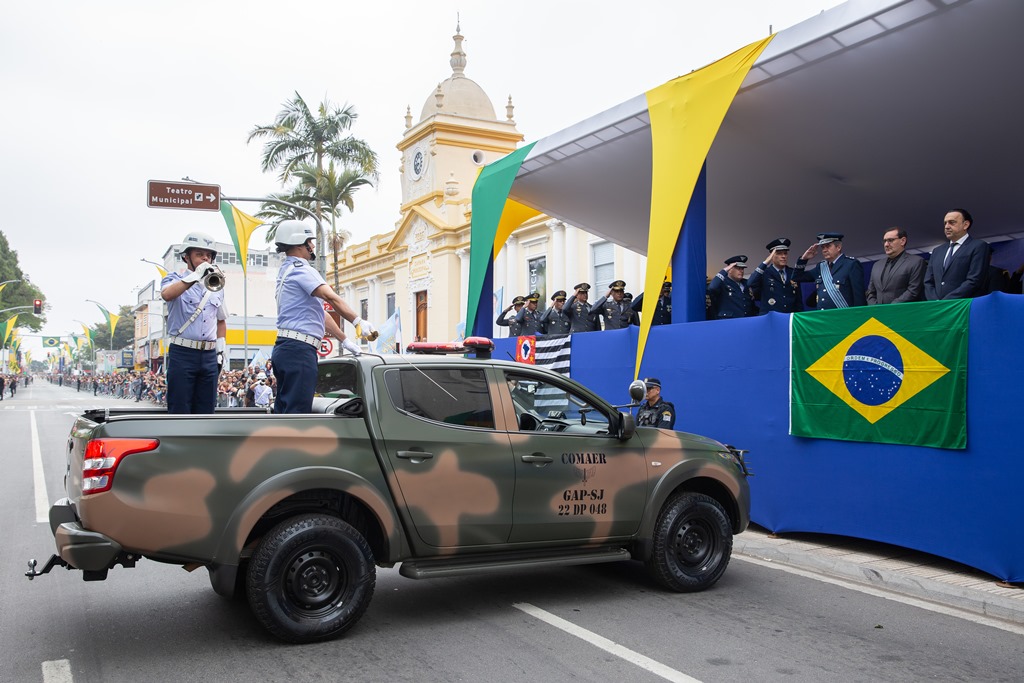 Após o Comandante Geral da Tropa, Coronel de Infantaria Márcio Simões Pereira Campos, apresentar-se ao Diretor-Geral do DCTA, o desfile teve início com grupamentos motorizados representando o Corpo de Bombeiros, a Polícia Militar do Estado de São Paulo, a Polícia Civil, a Guarda Municipal de São José dos Campos, entre outras instituições que trabalham diretamente em prol da população.