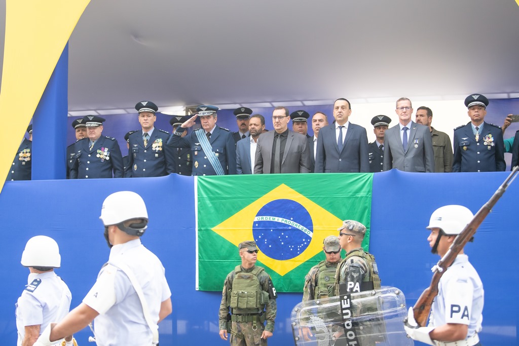 Depois do hasteamento, todas as autoridades seguiram para o desfile cívico-militar.