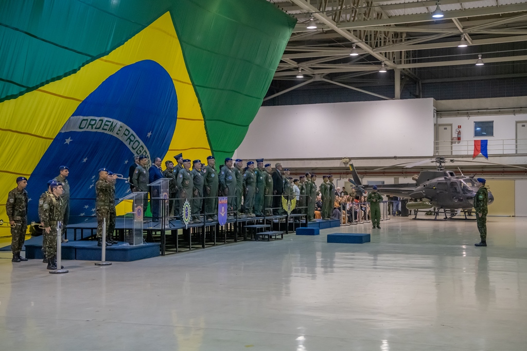 Ao término da formatura, em reconhecimento ao inestimável apoio prestado pela Marinha do Brasil (MB) e pela Força Aérea Brasileira (FAB) nas fases iniciais de implantação da nova aviação da Força Terrestre, a tropa entoou a Canção Cisne Branco e o Hino dos Aviadores.