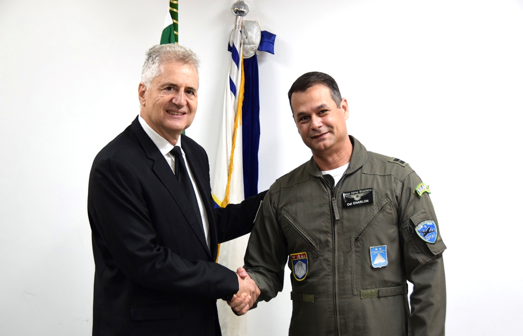 O Diretor de Desenvolvimento Científico e Tecnológico da FINEP, Doutor Carlos Alberto de Aragão Carvalho Filho, o Gerente de Departamento de Pesquisa Aplicada da FINEP, Guilherme Henrique Ismael de Azevedo e o Assessor da Diretoria de Desenvolvimento Científico e Tecnológico, Jorge Alves de Almeida Venâncio, foram recebidos pelo Diretor do Instituto de Aeronáutica e Espaço (IAE), Brigadeiro do Ar Frederico Casarino.