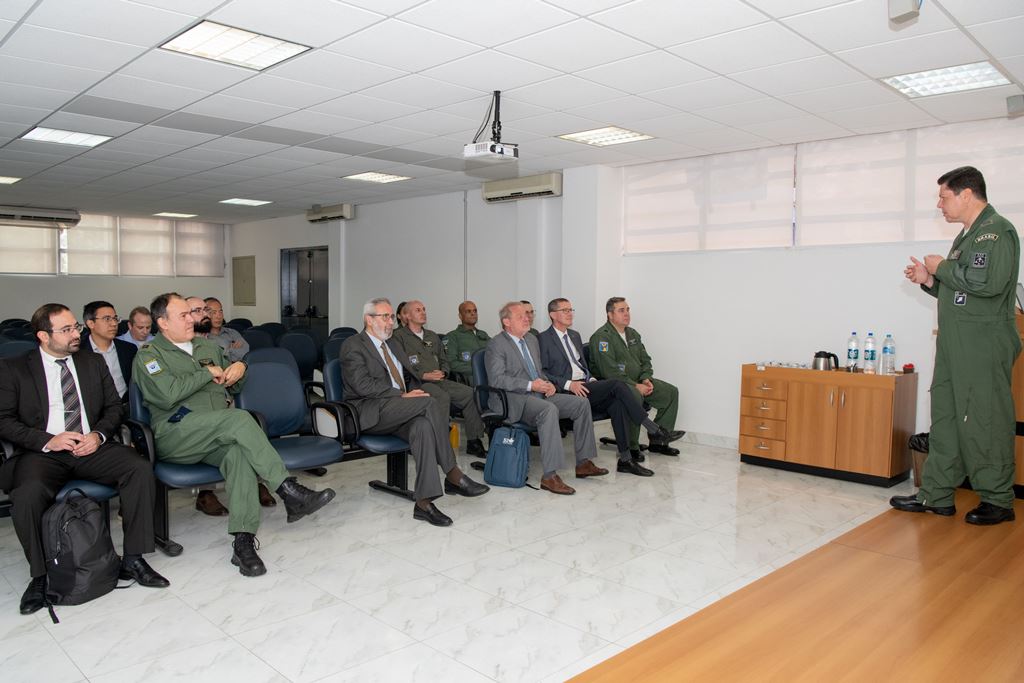 A visita teve início no Memorial Aeroespacial Brasileiro (MAB), onde foi realizada uma apresentação institucional sobre as soluções científico-tecnológicas desenvolvidas pelo DCTA no campo do Poder Aeroespacial pelo Diretor IAE, Brigadeiro Casarino.