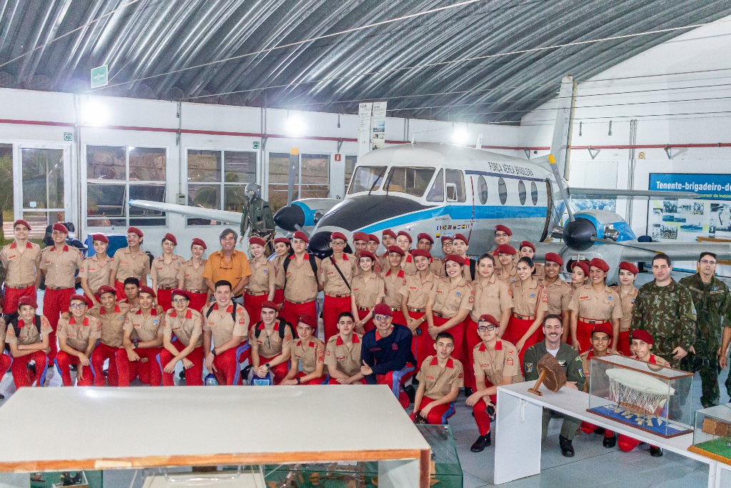 O grupo, formado por 48 alunos e 5 monitores, tiveram a oportunidade de conhecer o Memorial Aeroespacial Brasileiro (MAB) para uma visita guiada pelos cinco ambientes: Defesa, Aeronáutica, Espaço, Ensino e Pesquisas Avançadas.