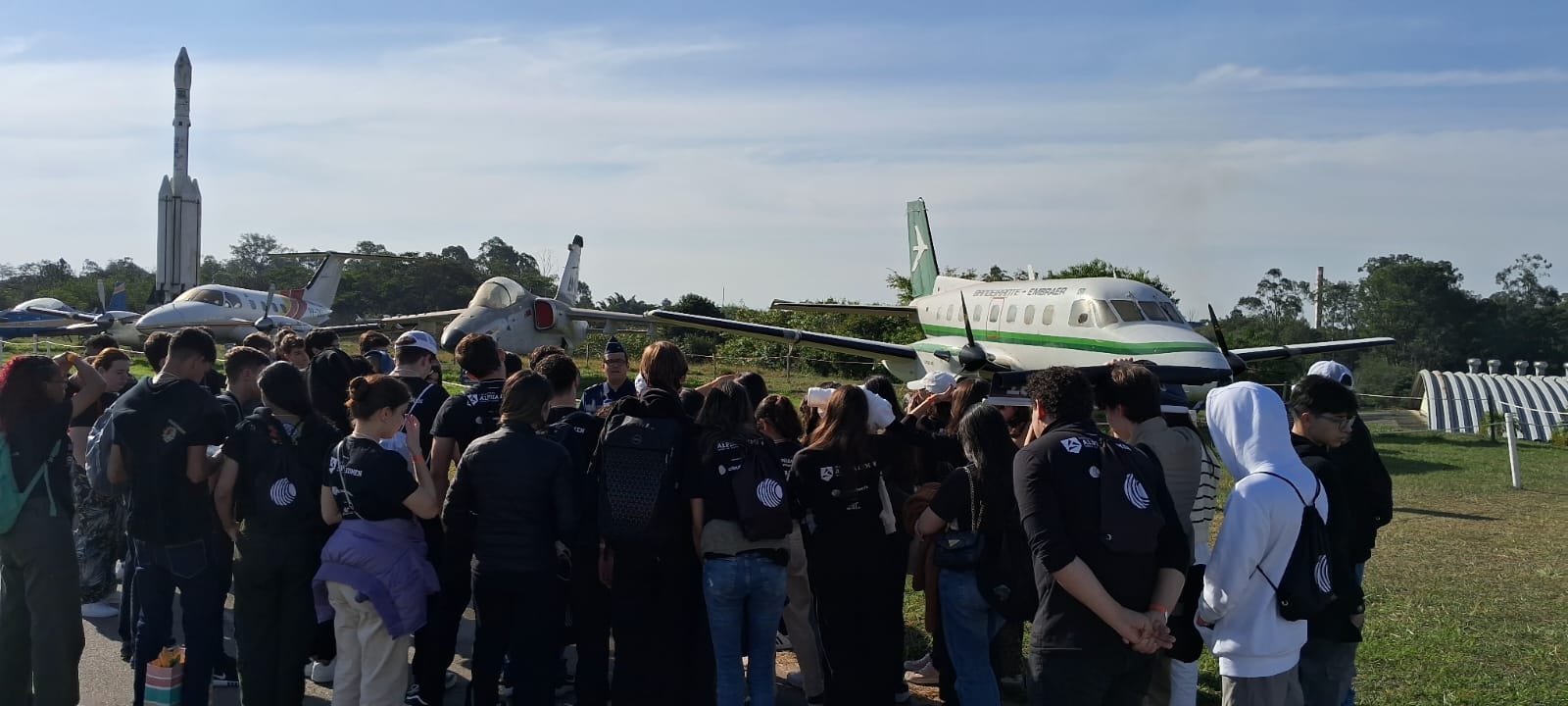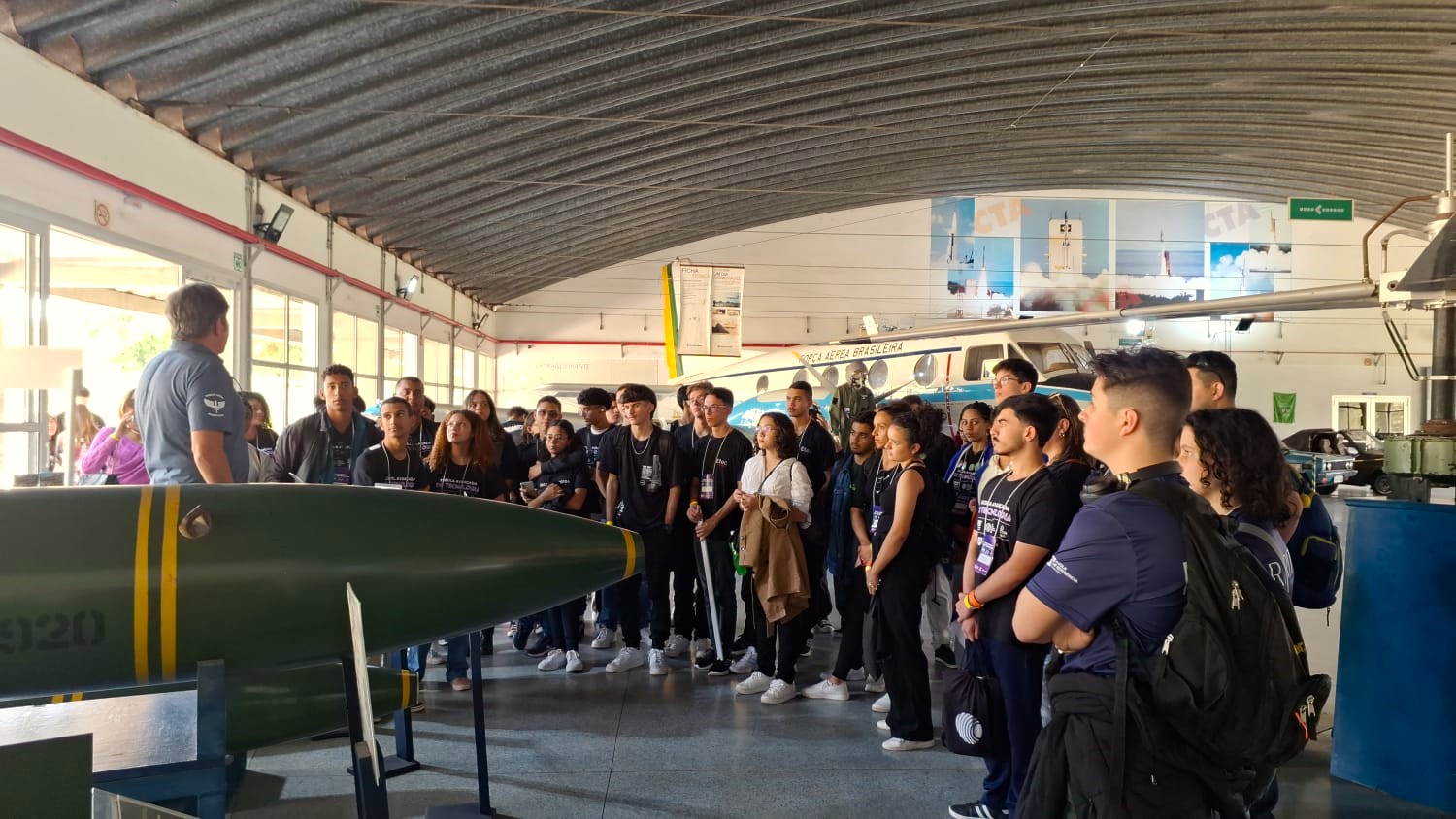 A visita guiada ao MAB integrou as atividades de vivência científica e tecnológica, proporcionando aos estudantes a oportunidade de conhecer a história do Departamento de Ciência e Tecnologia Aeroespacial (DCTA) e explorar o acervo do memorial, que está distribuído nas seguintes áreas: Ensino, Aeronáutica, Defesa, Espacial e Pesquisas Associadas.