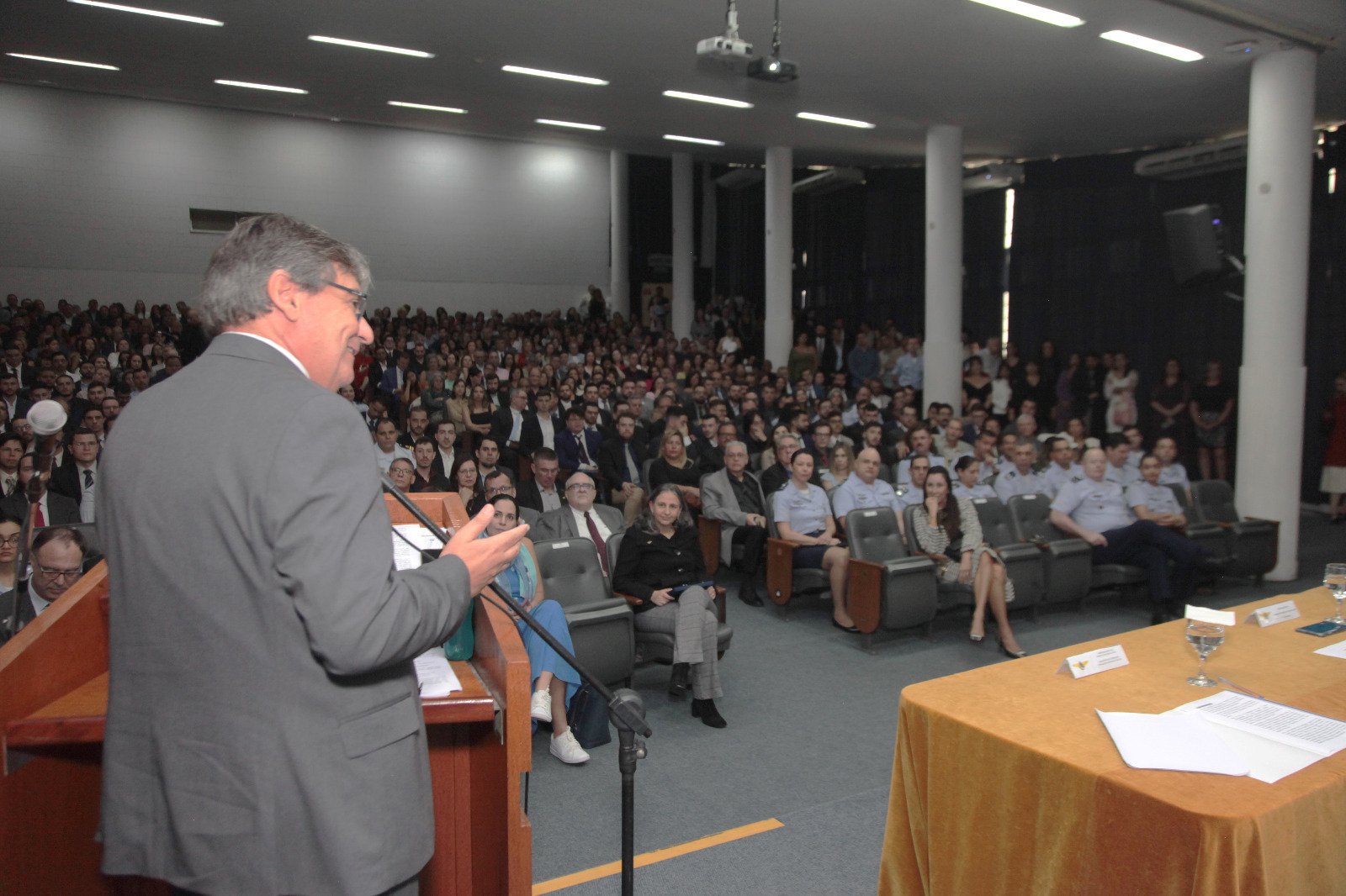 Também citando a contribuição ao país dos novos pós-graduados, o Reitor do ITA destacou que “são muitas as razões que trazem alegria e satisfação, dentre elas, o fato de disponibilizarmos à sociedade profissionais que, por meio da Ciência, Tecnologia e Inovação, do Ensino e Pesquisa, irão colaborar para identificar e endereçar problemas que certamente farão com que o Brasil alce voos mais altos em termos de seu posicionamento perante outras nações”. “Inspirem-se em um grande brasileiro, alguém que certamente tinha a inovação em seu sangue, o Marechal Casimiro Montenegro Filho, que muito contribuiu para que estivéssemos todos aqui hoje, neste ano em que comemoramos os seus 120 anos de nascimento”, concluiu o Doutor Guilherme.