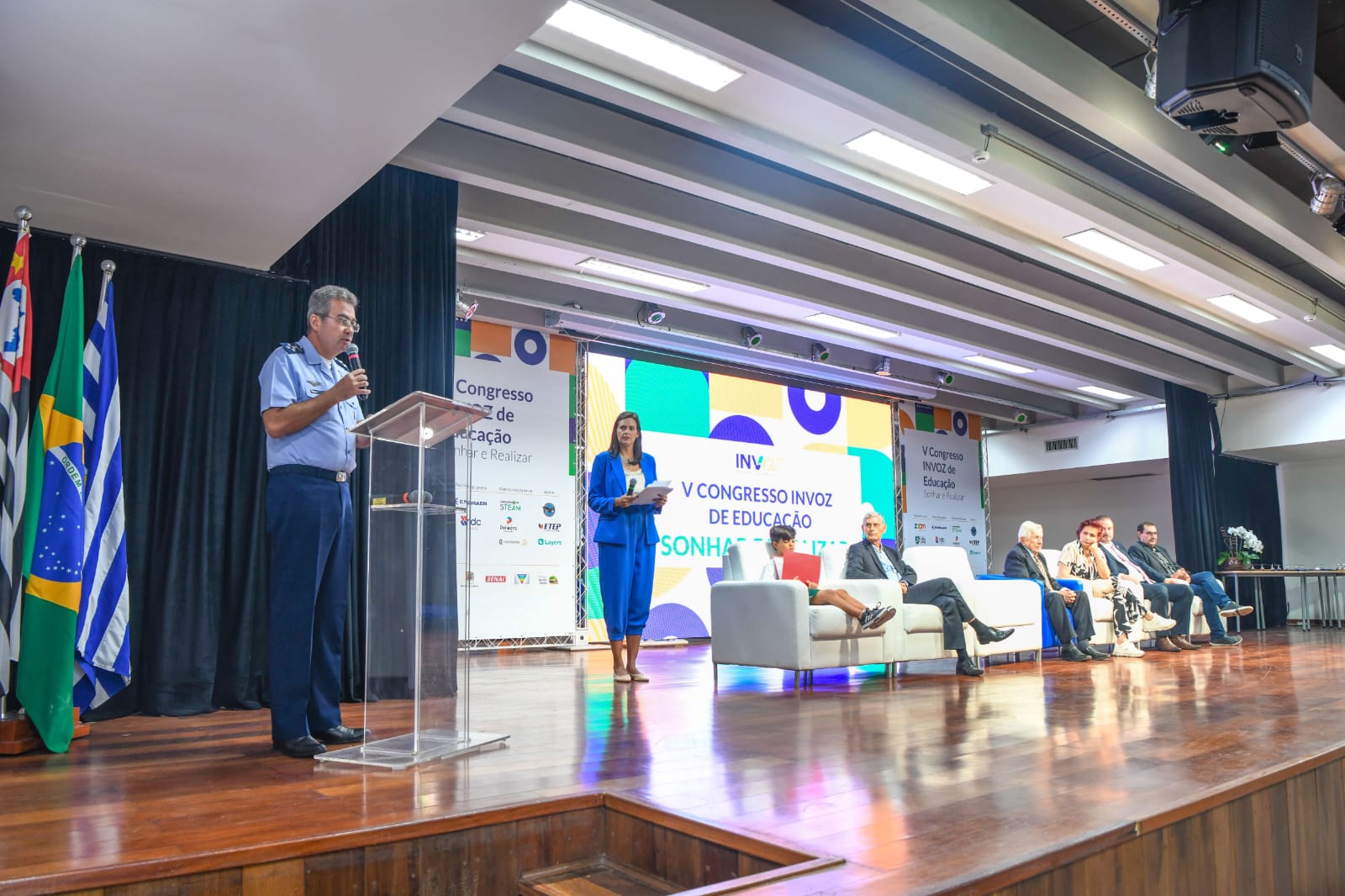 No dia 24 de maio de 2024, o Diretor-Geral do Departamento de Ciência e Tecnologia Aeroespacial (DCTA), Tenente-Brigadeiro do Ar Maurício Augusto Silveira de Medeiros, participou da abertura do V Congresso de Educação INVOZ 2024, realizado no Centro de Formação do Educador (CEFE), em São José dos Campos (SP).