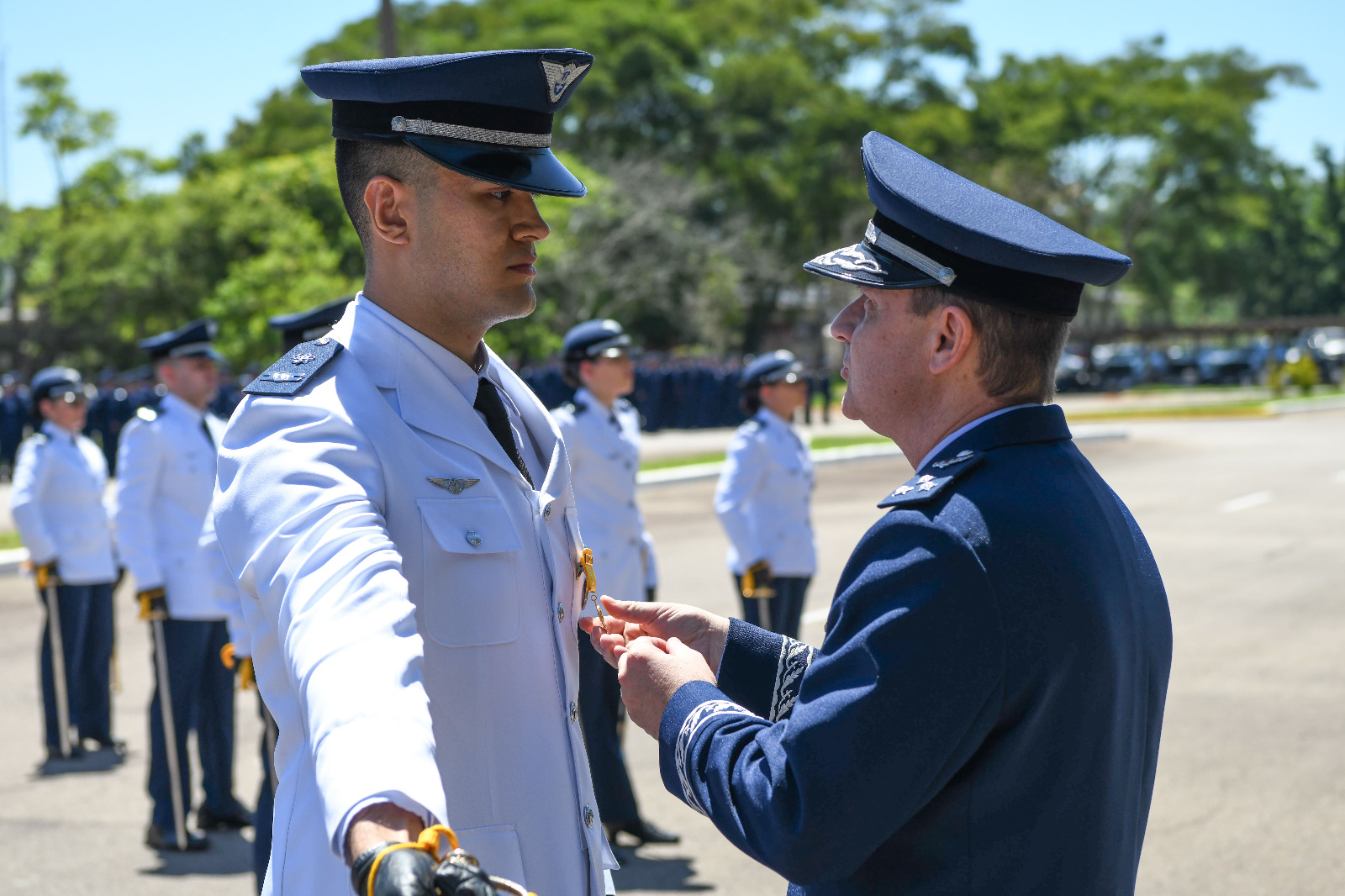 “Ao atingirem o oficialato no Comando da Aeronáutica, muito além da liturgia do cerimonial, seus juramentos entoados em uníssono ressoarão para sempre o compromisso de participarem da manutenção da soberania do espaço aéreo e, no coração de todos os brasileiros e brasileiras, o sentimento de dedicação integral à nossa Pátria amada”, reforçou o Major-Brigadeiro Bellintani.
