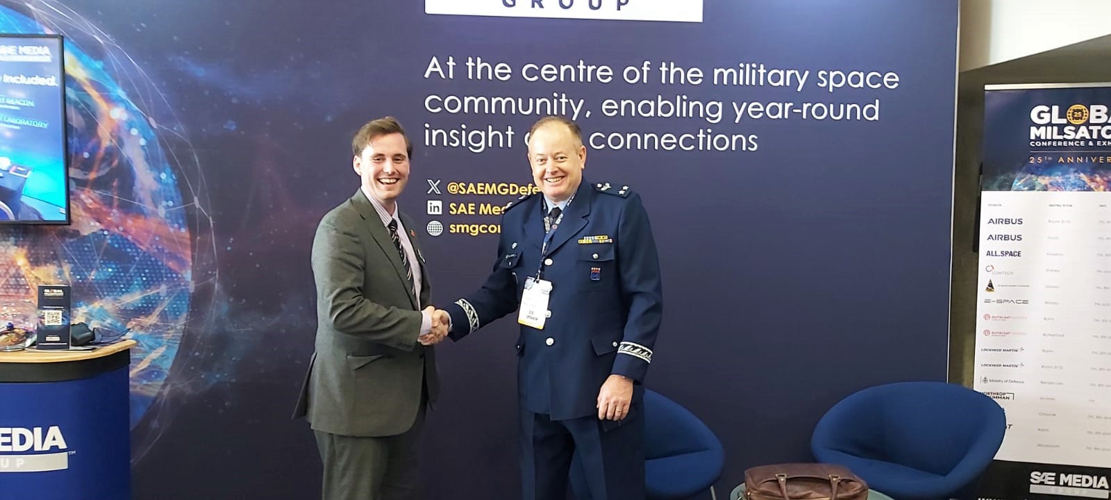 A Força Aérea Brasileira (FAB) foi representada, em âmbito internacional, pelo Diretor do Instituto de Aeronáutica e Espaço (IAE), Brigadeiro do Ar Frederico Casarino, no 25º ano da Global MilSatCom, evento ocorrido de 06 à 10 de novembro, em Broad Sanctuary, Westminster, Londres.