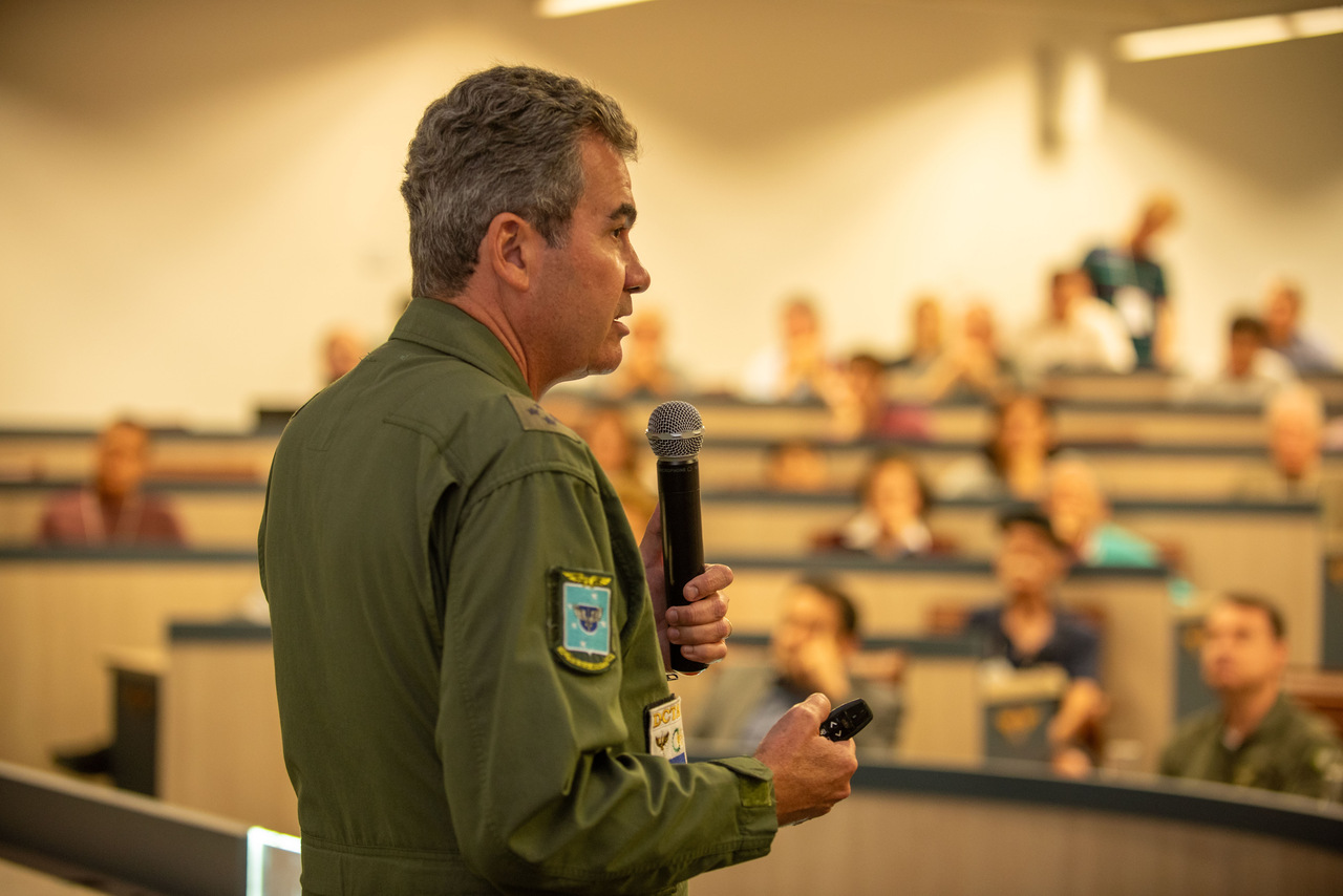 O Brigadeiro do Ar Frederico Casarino palestrou sobre o Programa Espacial Brasileiro e o avanço de sua capacidade no Espaço. Nesta apresentação, foram mencionados tópicos importantes, como: a avaliação dos veículos de lançamento atuais e os desenvolvimentos planejados; a visão geral da infraestrutura espacial no Brasil, o Centro Espacial de Alcântara (CEA) e as vantagens de fazer um lançamento a partir dele; e, por fim, sobre a capacidade e o planejamento SATCOM, o SGDC-1 e 2 (satélites de comunicação geoestacionário brasileiros).
