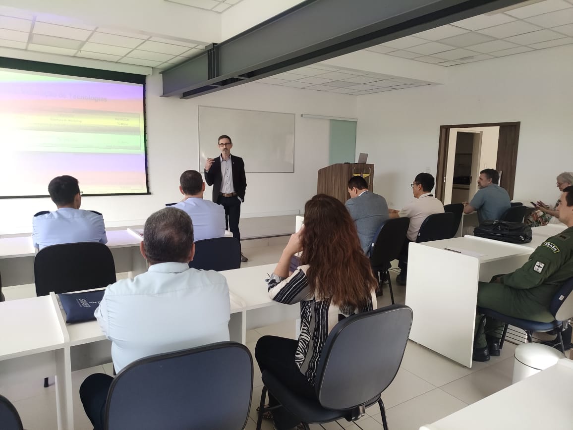 Na oportunidade, participaram como instrutores do treinamento o professor da Universidade Federal de Santa Catarina (UFSC), especialista em Avaliação, Valoração e Transferência de Tecnologia, Doutor Irineu Afonso Frey e o Chefe Adjunto da CGI, Tenente-Coronel Aviador Breno Ricardo de Araújo Leite.