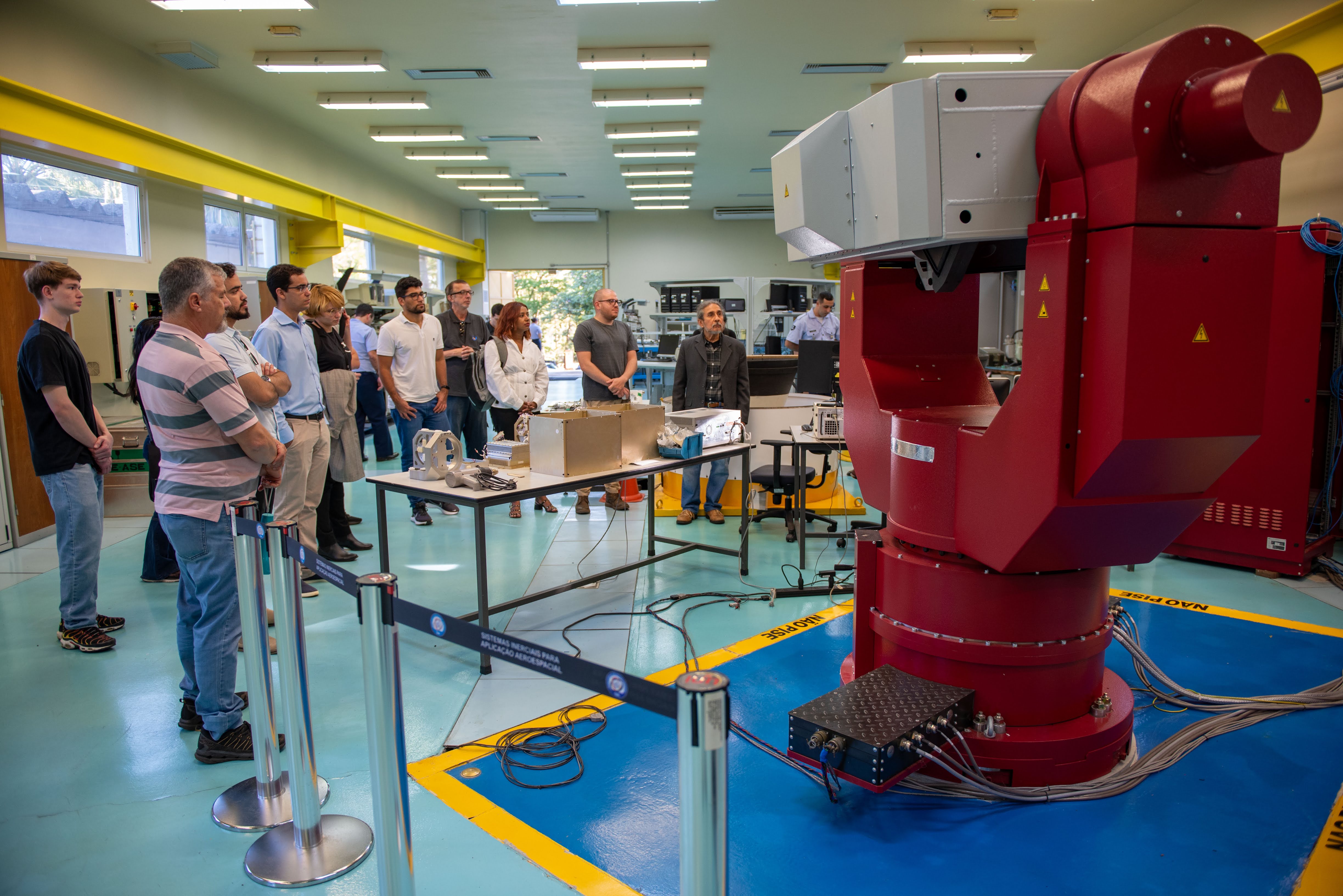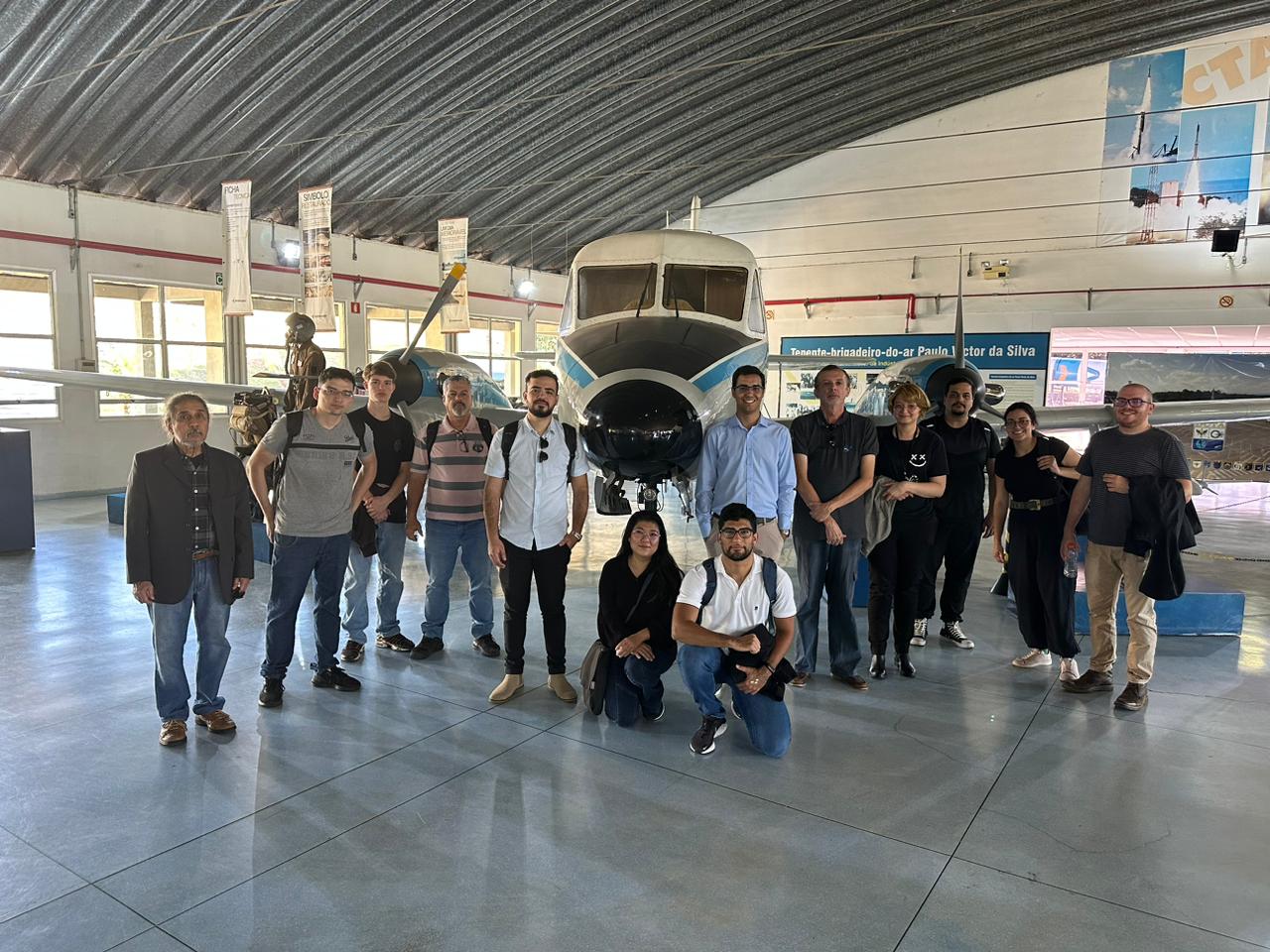 Posteriormente, o grupo foi conhecer o Laboratório de Identificação, Navegação, Controle e Simulação e a Divisão de Eletrônica de Ensaios no Instituto de Aeronáutica e Espaço (IAE).