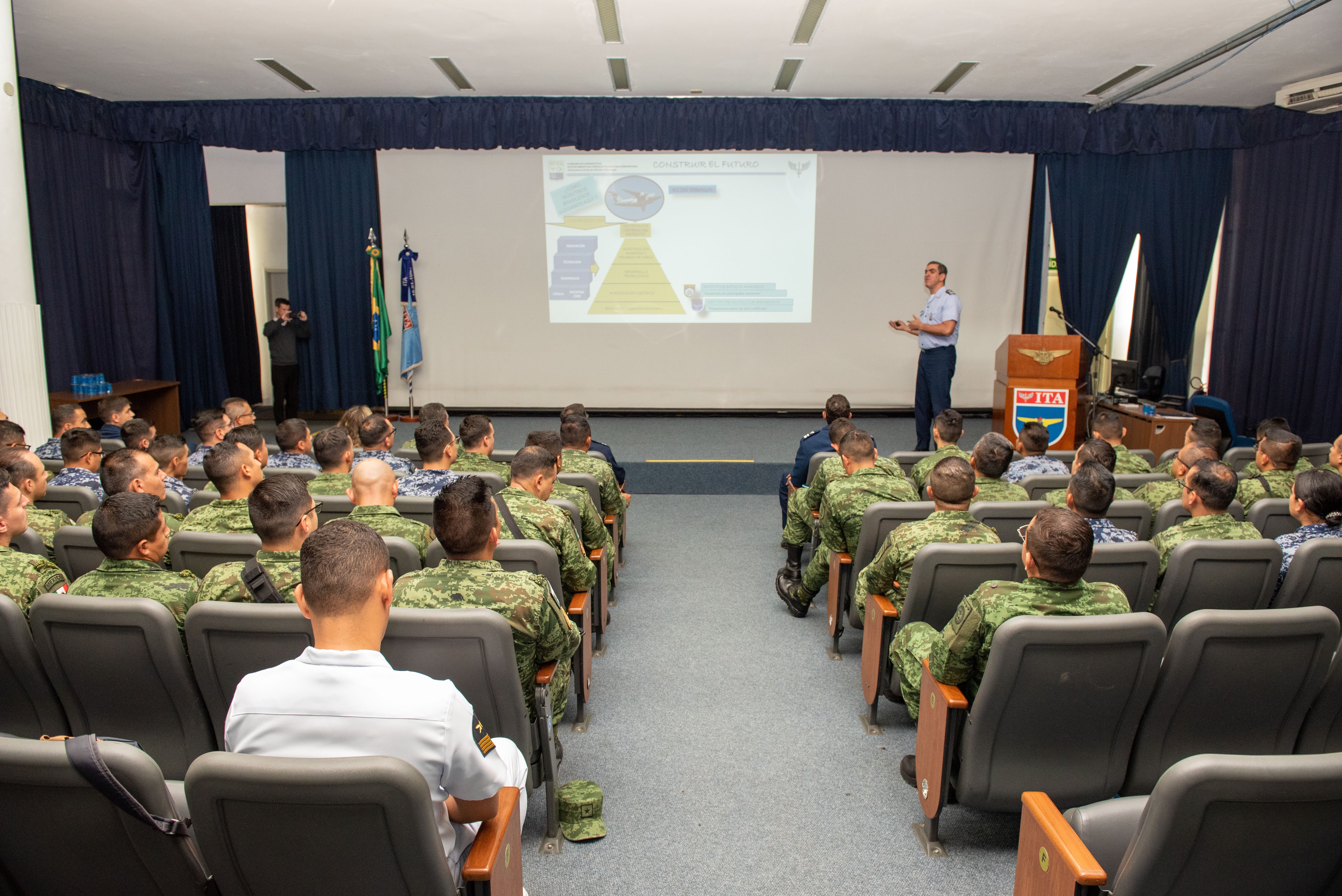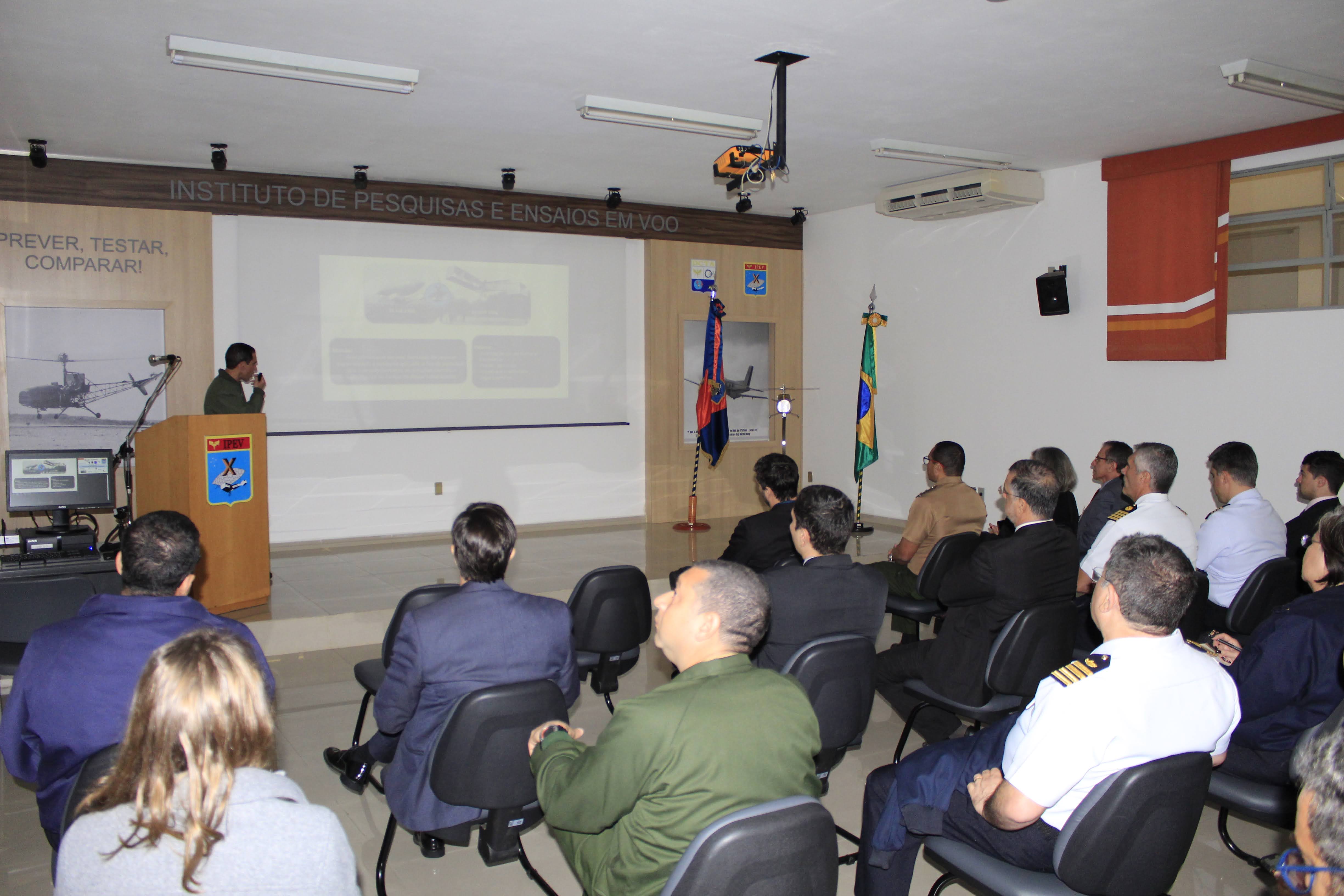 A comitiva foi recepcionada pelo Chefe do Escritório Corporativo de Gerenciamento de Projetos do DCTA, Coronel Aviador Manuel Antônio de La Sagra Fagundes Pérez, que proferiu uma palestra institucional sobre o DCTA, destacando os projetos e pesquisas desenvolvidos pelas Organizações Militares (OM) da Guarnição de Aeronáutica de São José dos Campos (GUARNAE-SJ).