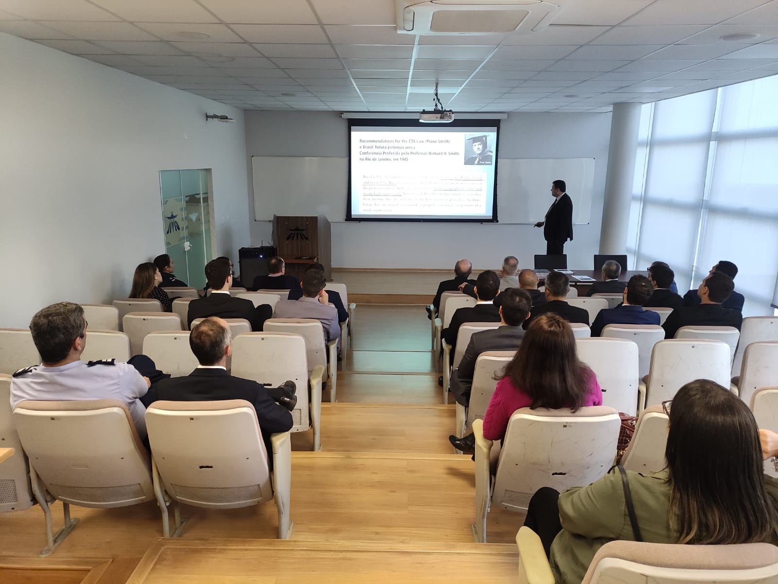 Posteriormente, o Reitor do Instituto Tecnológico de Aeronáutica (ITA), Professor Doutor Anderson Ribeiro Correia, ministrou uma apresentação institucional sobre o instituto, reforçando a grande importância deste centro acadêmico responsável pela formação de engenheiros aeronáuticos de excelência que é referência em todo o Brasil.
