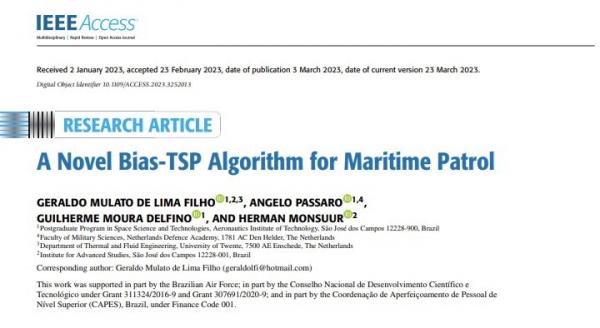 O artigo científico intitulado “A Novel Bias-TSP Algorithm for Maritime Patrol”, produzido por dois alunos egressos do Programa de Pós-Graduação em Aplicações Operacionais (PPGAO), do Instituto Tecnológico de Aeronáutica (ITA), em conjunto com um pesquisador do Instituto de Estudos Avançados (IEAv) e um professor da Academia de Defesa Holandesa, foi publicado pela revista americana IEEE Access, referência na área de estudos das Engenharias.