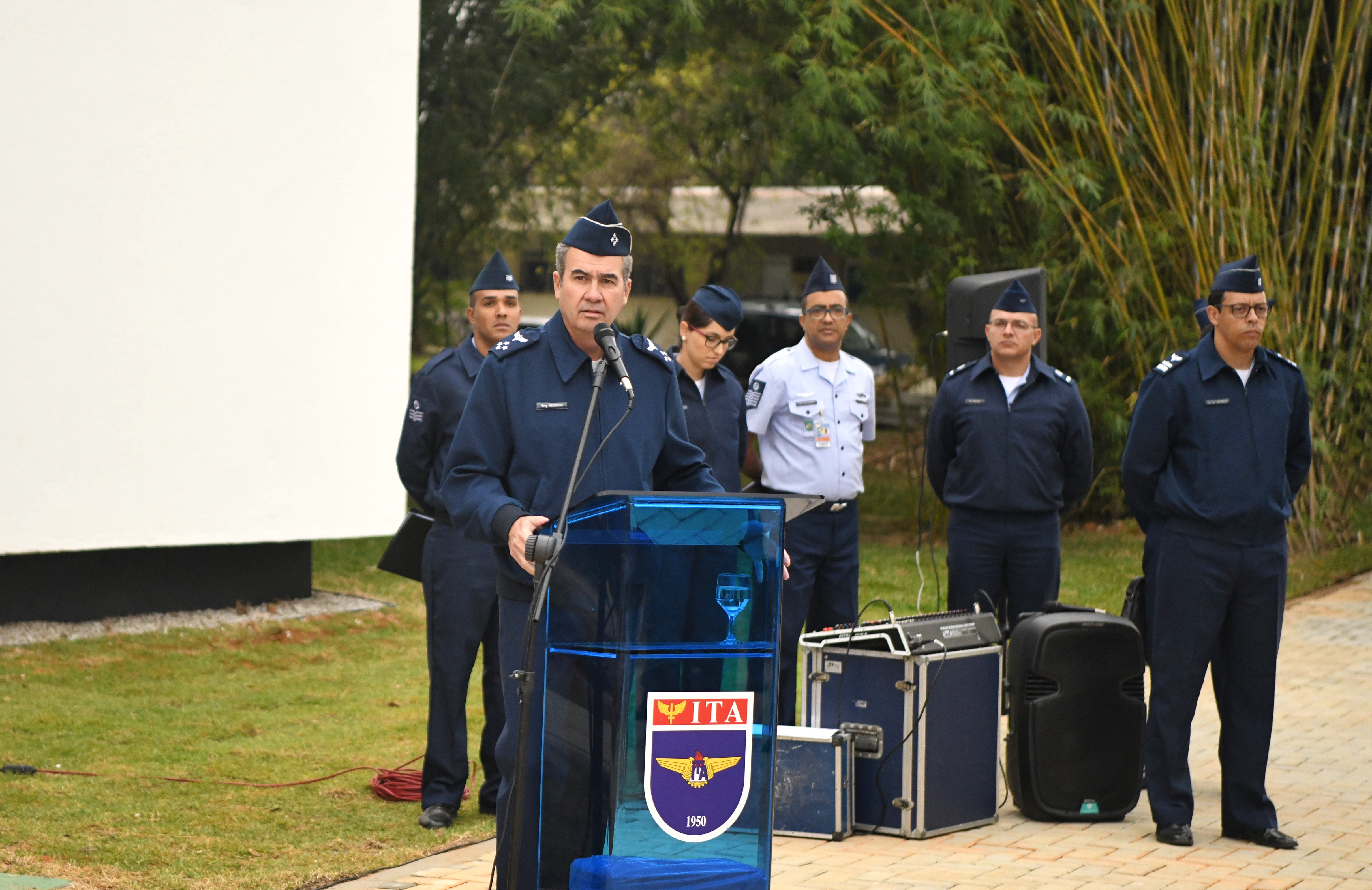 Durante a leitura da Ordem do Dia, o Coronel Artêmio, falou da relevância do instituto, que há quatro décadas está na vanguarda da pesquisa e desenvolvimento de tecnologias aeroespaciais no Brasil, desempenhando um papel ímpar no avanço das capacidades do Comando da Aeronáutica (COMAER) em diversificados nichos tecnológicos.