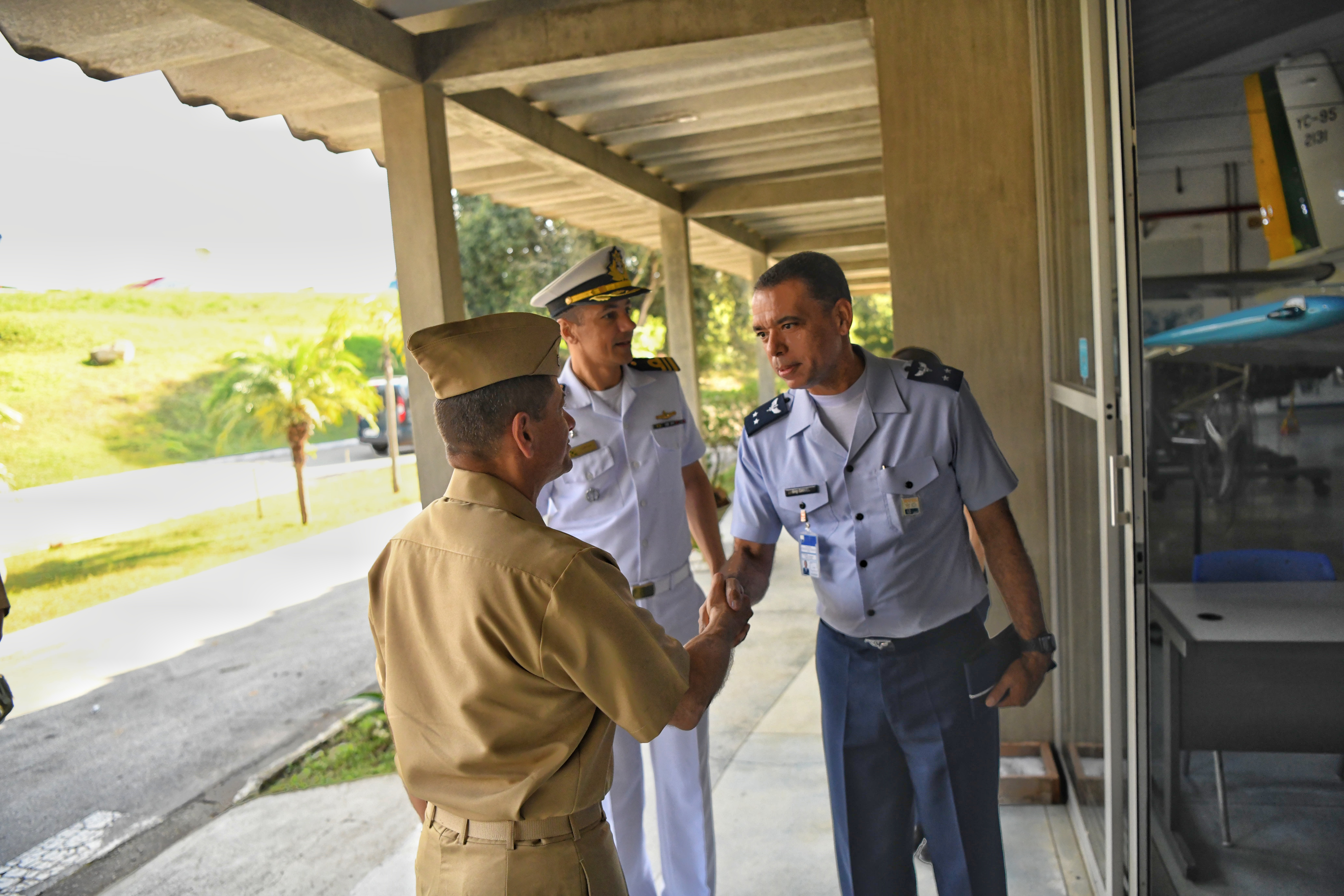 A delegação colombiana, liderada pelo Contra-Almirante Omar Yesid Moreno Oliveros, foi recebida pelo Chefe do Subdepartamento de Administração do DCTA, Brigadeiro do Ar Alexandre Daniel Pinheiro da Silva.