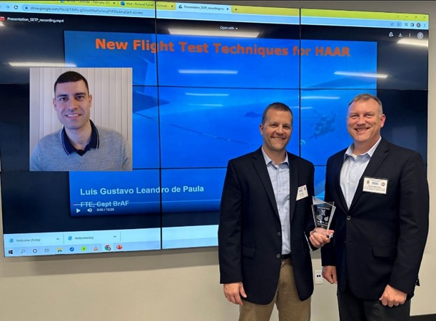 No último dia 27 de fevereiro, a “Society of Experimental Test Pilots (SETP)” premiou as novas técnicas de ensaio para “Reabastecimento em Voo de Helicópteros” apresentadas no 14th Annual Southeast Section SETP Symposium pelo Capitão Engenheiro Luís Gustavo Leandro de Paula, do efetivo do Instituto de Pesquisas e Ensaios em Voo (IPEV), do Departamento de Ciência e Tecnologia Aeroespacial (DCTA), localizado em São José dos Campos. O IPEV é o maior responsável pela pesquisa aplicada, desenvolvimento e inovação relacionada com os meios de Força Aérea do Brasil.
