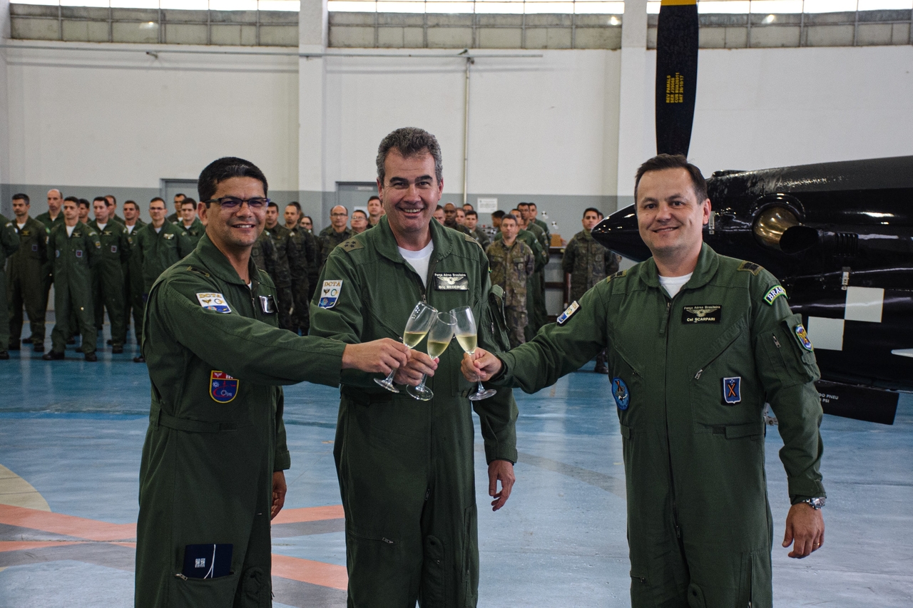 Após o pouso, bombeiros da Empresa Brasileira de Infraestrutura Aeroportuária (INFRAERO) deram as boas-vindas com o tradicional banho de batismo, que contou com a participação do Diretor do Instituto de Fomento e Coordenação Industrial (IFI), Cel Av Luiz Marcelo Terdulino De Brito. Logo em seguida, o Brigadeiro Medeiros passou às mãos do Diretor do IPEV, Cel Av José Ricardo Silva Scarpari, o livro de registro do avião, ao som de canções entoadas pela Banda de Música e diante da tropa do Instituto, composta por pilotos, engenheiros, mecânicos e técnicos que participaram do projeto desde o desenvolvimento do protótipo da aeronave modernizada.