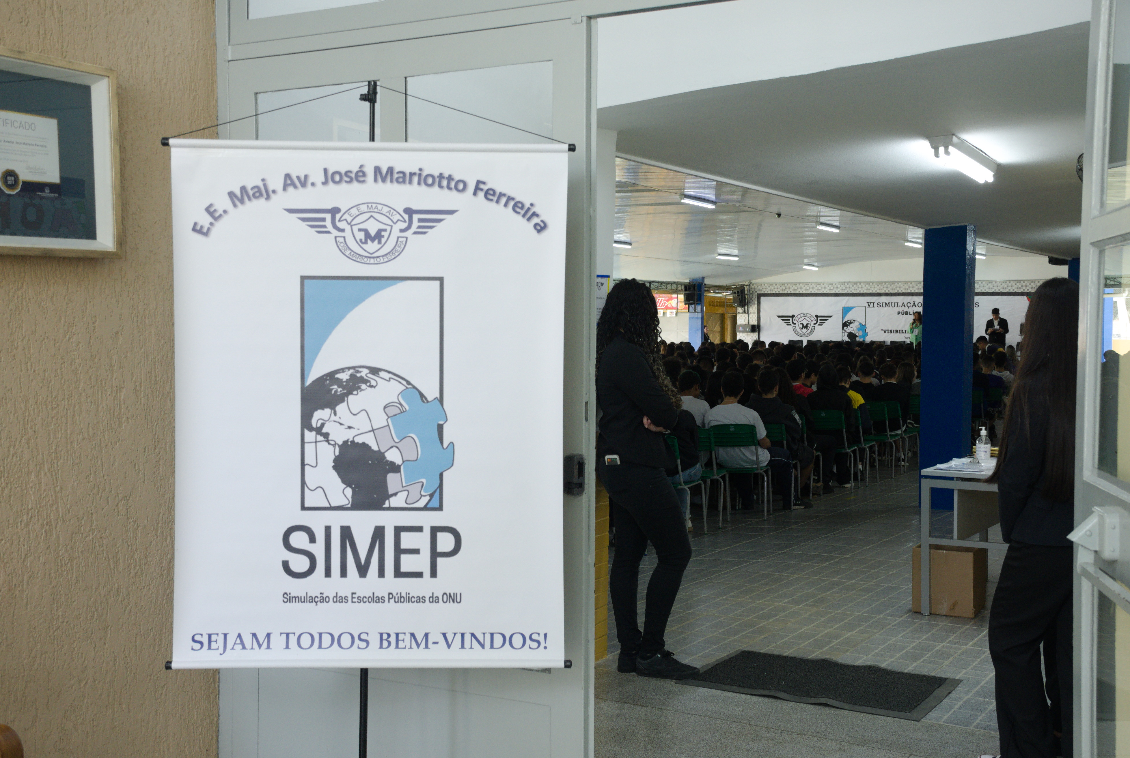 Nos dias 26 e 27 de agosto de 2022, a Escola Estadual Major Aviador José Mariotto Ferreira promoveu a VI Simulação das Escolas Públicas da ONU (SIMEP), evento que ocorre anualmente, desde 2017, e tem como objetivo simular debates e reuniões acerca de assuntos que estão em evidência e têm grande impacto global.
