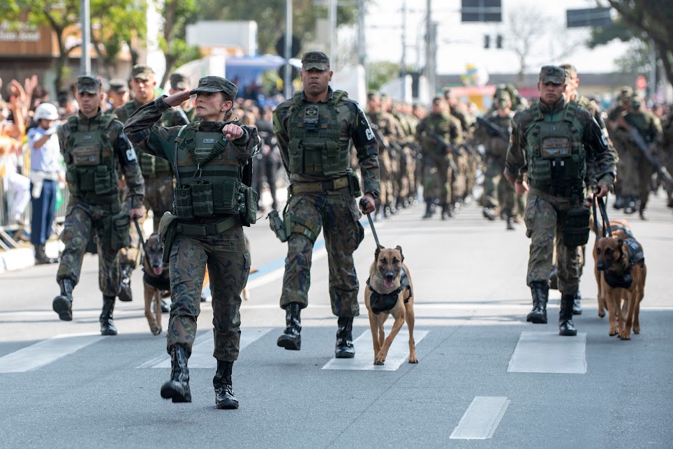 O fechamento do desfile da Força Aérea Brasileira ficou por conta do pelotão de Cães de Guerra e do subgrupamento de Infantaria, representando a tropa terrestre da Aeronáutica.