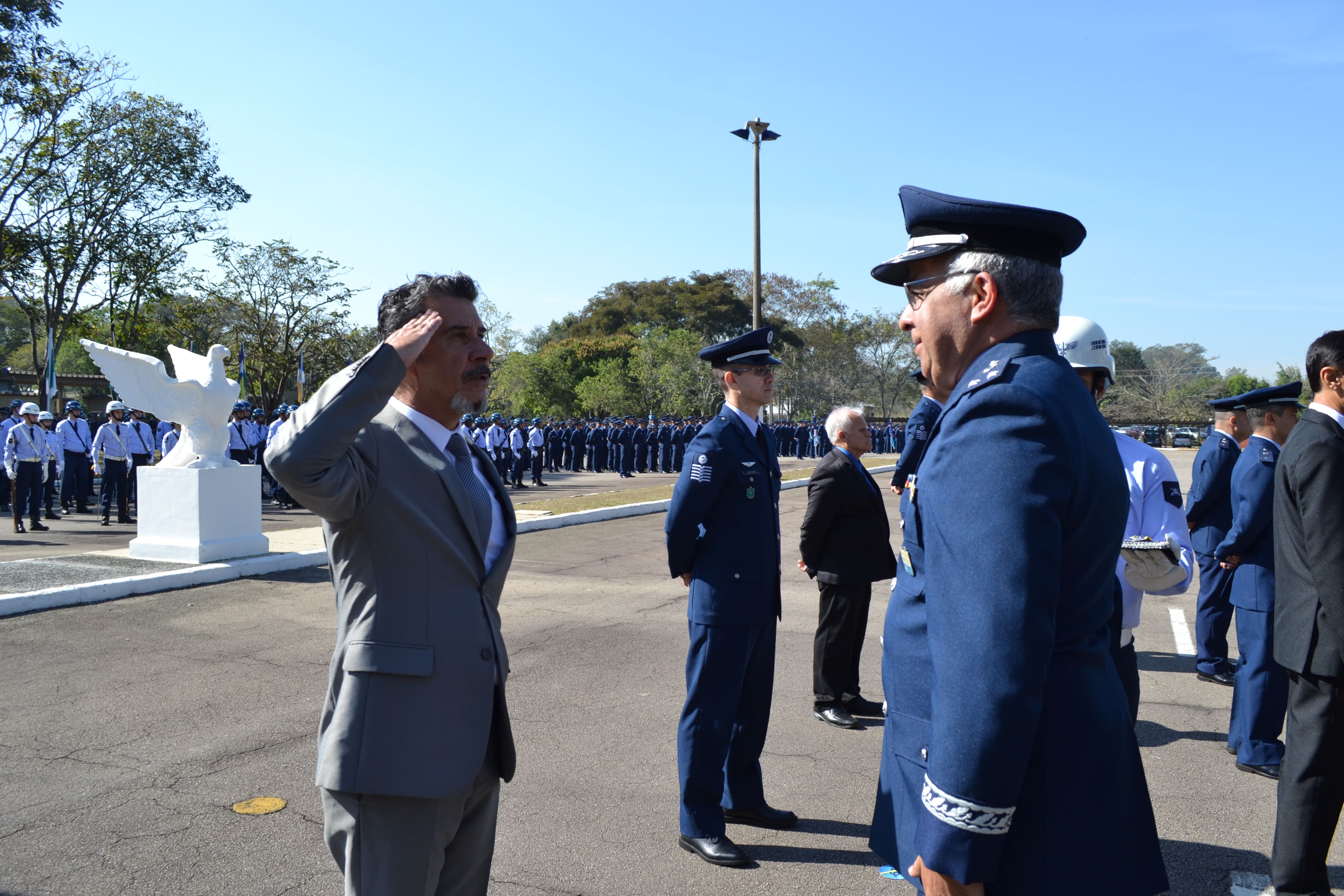 Ao som do Dobrado do Primeiro Grupo de Aviação de Caça (Senta a Pua), a tropa desfilou em continência ao Diretor-Geral do DCTA, celebrando o aniversário do primeiro aviador brasileiro, que fomentou a indústria aeronáutica e mudou, para sempre, a história da humanidade.