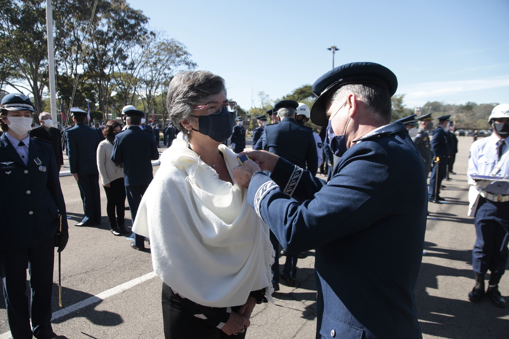 Na solenidade, 32 civis e militares foram agraciados com a medalha “Mérito Santos-Dumont”. A comenda é destinada a civis e militares, brasileiros ou estrangeiros, que tenham prestado destacados serviços à Aeronáutica Brasileira ou, por suas qualidades ou seu valor, em relação à Aeronáutica, tenham sido julgados merecedores.