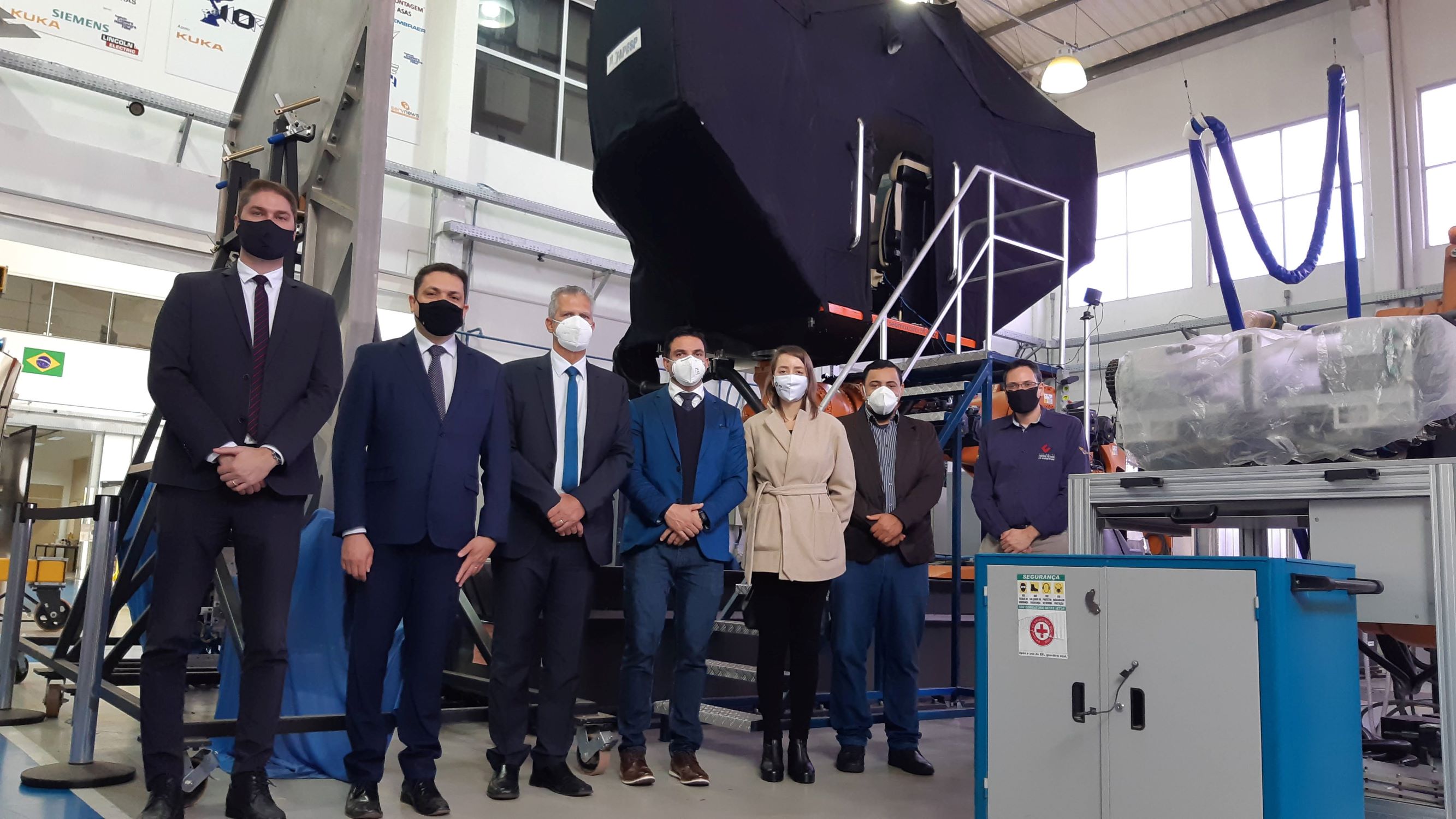 Em continuidade a visita, no período da tarde, a comitiva visitou as instalações do ITA, onde conheceram o Centro de Competência em Manufatura (CCM), local que detém o SIVOR, simulador de voo que utiliza uma plataforma robótica resultado de uma parceria técnica entre ITA e EMBRAER e, também, o Centro Espacial do ITA (CEI), responsável pela capacitação de recursos humanos, pesquisa e desenvolvimento no setor espacial no âmbito do Ministério da Defesa.