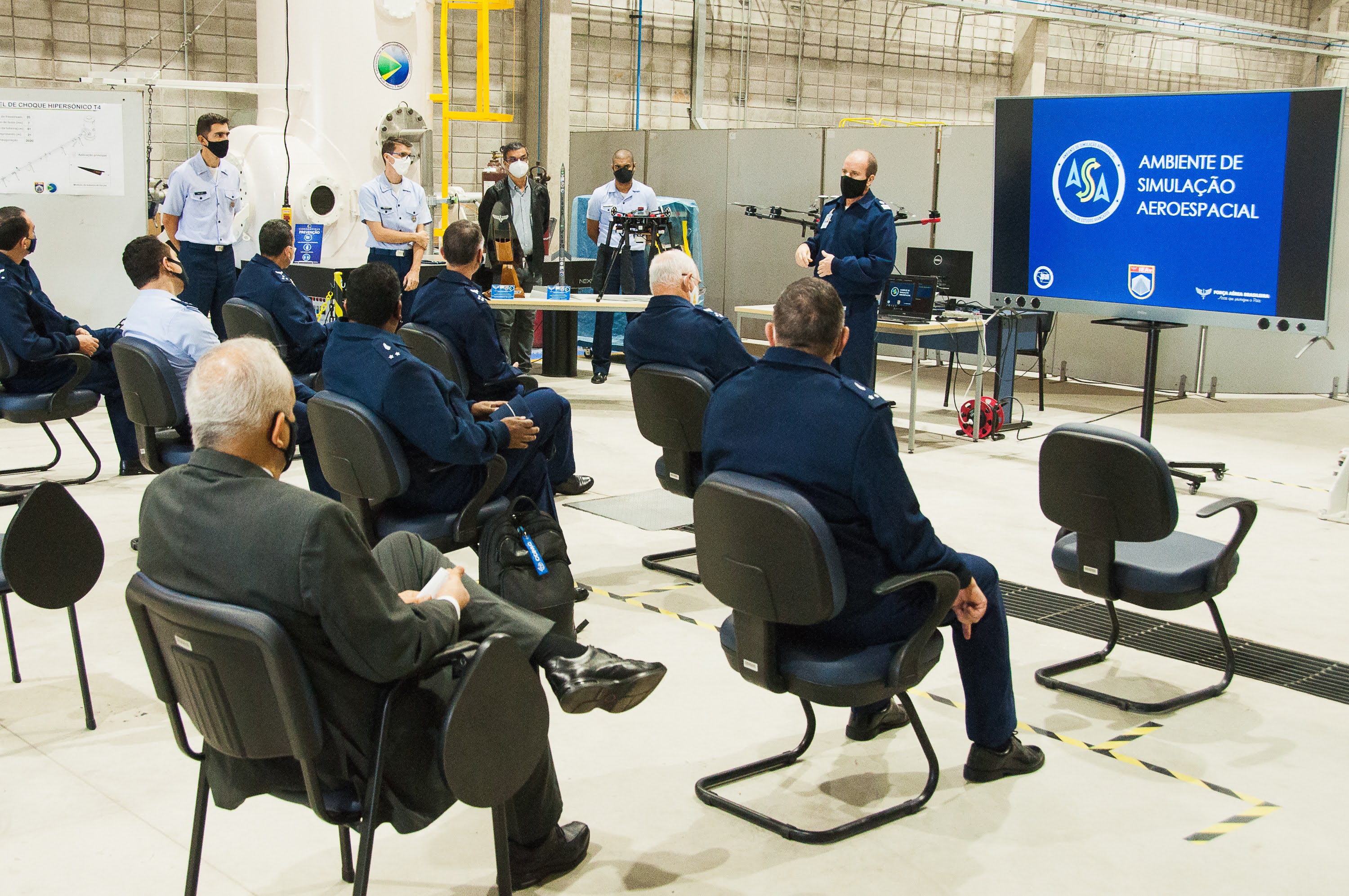 Na abertura da visita, ocorreu a apresentação do Diretor-Geral do DCTA à comitiva, na qual o Brigadeiro Potiguara correlacionou as atividades realizadas pelo Departamento com as Subchefias do EMAER, ressaltando o trabalho desenvolvido e os objetivos pretendidos ao longo dos anos pelo DCTA. “Nós estamos em busca de um objetivo mais palpável, de evidenciar aquilo que vivemos diariamente, ou seja, o desenvolvimento tecnológico fruto de pesquisas e conhecimento empregado, que resulta em projetos alinhados com o Plano Estratégico Militar da Aeronáutica (PEMAER) e aquilo que o DCTA tem como entregável em termos de Força Aérea”, afirma.Dentre as Organizações Militares visitadas estão o Instituto de Pesquisas e Ensaios em Voo (IPEV), que demonstrou sua capacidade de atuação por meio do briefing do Diretor, Coronel Aviador Marcelo Zampier Bussmann e da visita ao Laboratório de Telemetria e o Simulador de Voo, ferramenta de apoio à formação de pessoal e de campanhas de Ensaios em Voo, pois permite estudar o comportamento de aeronaves para uma determinada missão.