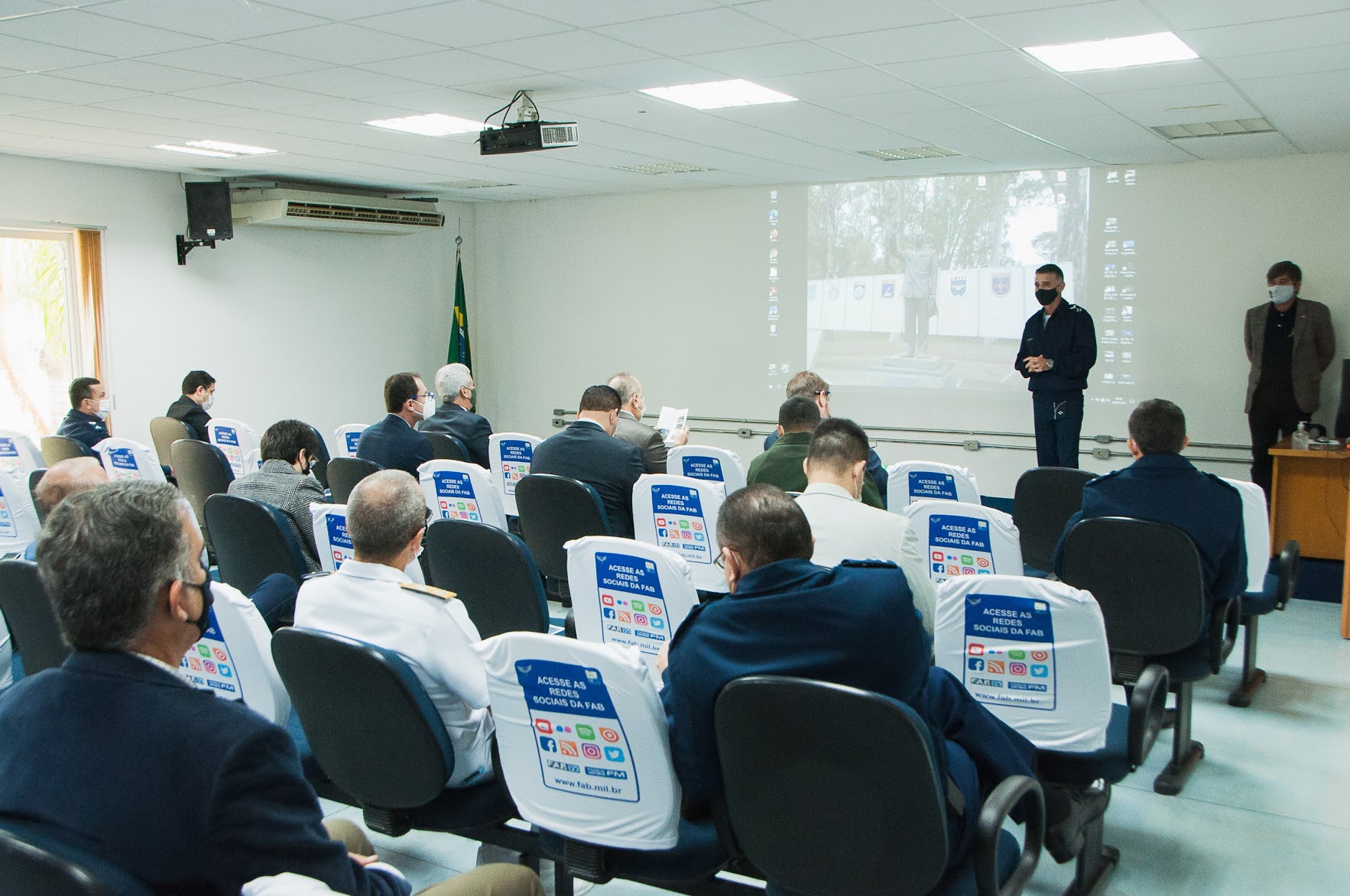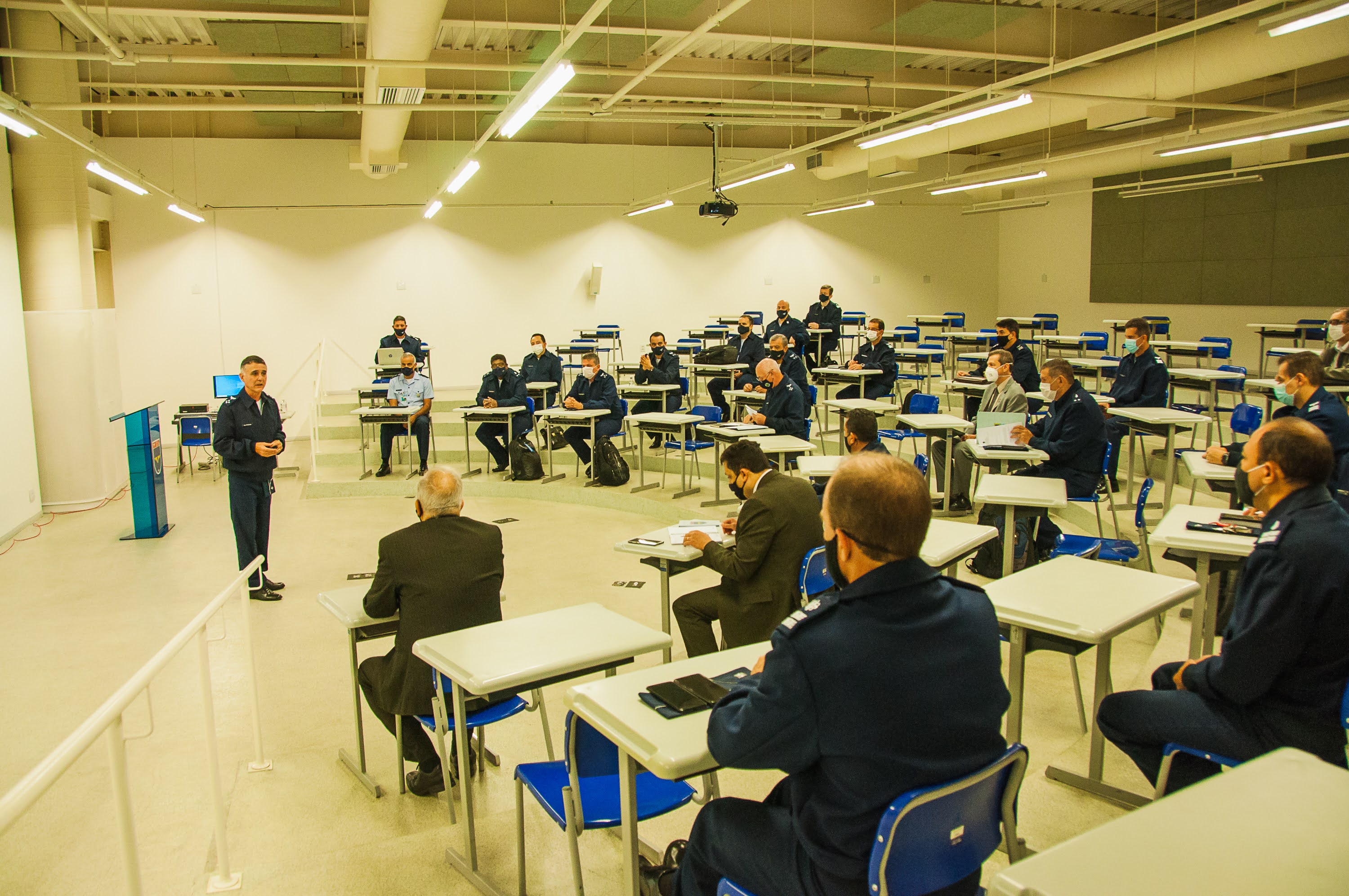 Durante a manhã, o grupo participou das apresentações Institucionais do Reitor do Instituto Tecnológico de Aeronáutica (ITA), Professor Doutor Anderson Ribeiro Correia, do Diretor do Instituto de Aeronáutica e Espaço (IAE), Brigadeiro do Ar César Augusto O’Donnell Álvan e do Diretor Instituto de Estudos Avançados (IEAv), Coronel Engenheiro Fábio Andrade de Almeida.