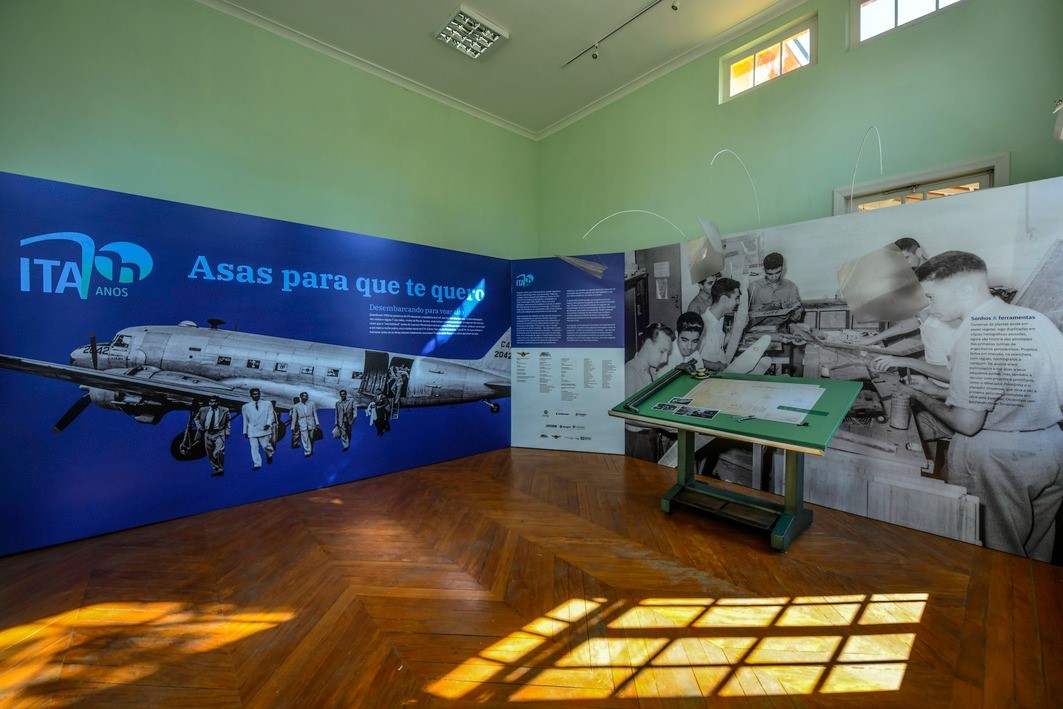 É a primeira vez que o Instituto traz ao público parte de seu acervo histórico, fora dos muros da instituição. Instalada no Pavilhão São José, a mostra tem como espinha dorsal uma grande linha do tempo, que parte dos primórdios nos anos 50 aos tempos atuais, em momento de expansão. Uma vitrine especial reunirá objetos pessoais do Marechal Casimiro Montenegro Filho, idealizador do ITA.