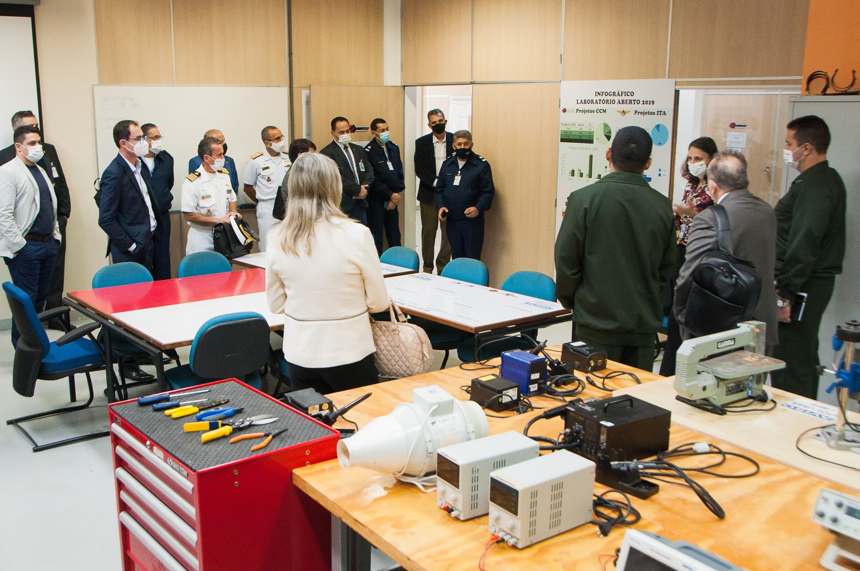 A Comitiva também foi apresentada ao Centro de Competência em Manufatura (CCM), laboratório do ITA especializado em todas as etapas do Ciclo de Vida de Produto, com pesquisas voltadas ao desenvolvimento da indústria e ao Centro Espacial do ITA (CEI) responsável pela capacitação de recursos humanos e pela pesquisa e desenvolvimento do setor espacial. Nesses laboratórios, os visitantes puderam ver o trabalho realizado na área de pesquisa, desenvolvimento e inovação tecnológica.