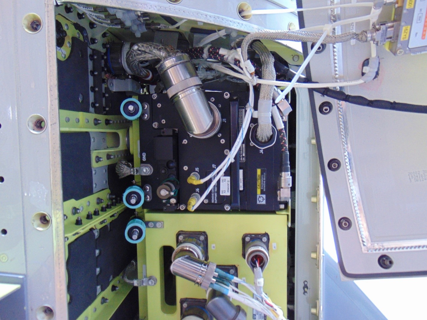 Mock-up do CM4-B, fabricado na empresa Kryptus, inserido no Interrogador instalado no Gripen 4100, o primeiro da FAB.