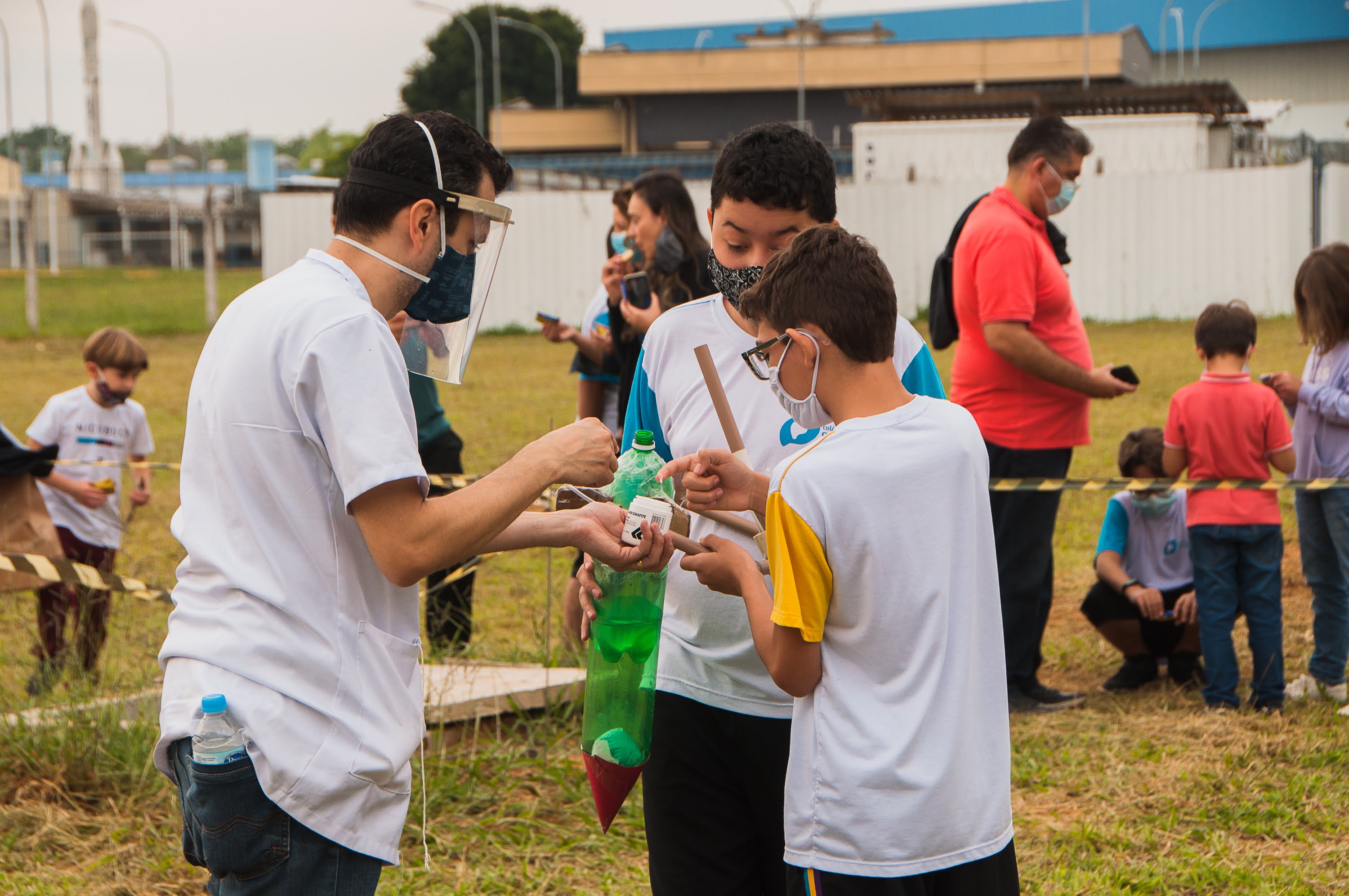 Em competição, os alunos apresentaram seus foguetes de garrafa pet e conheceram o legado do Memorial Aeroespacial Brasileiro
