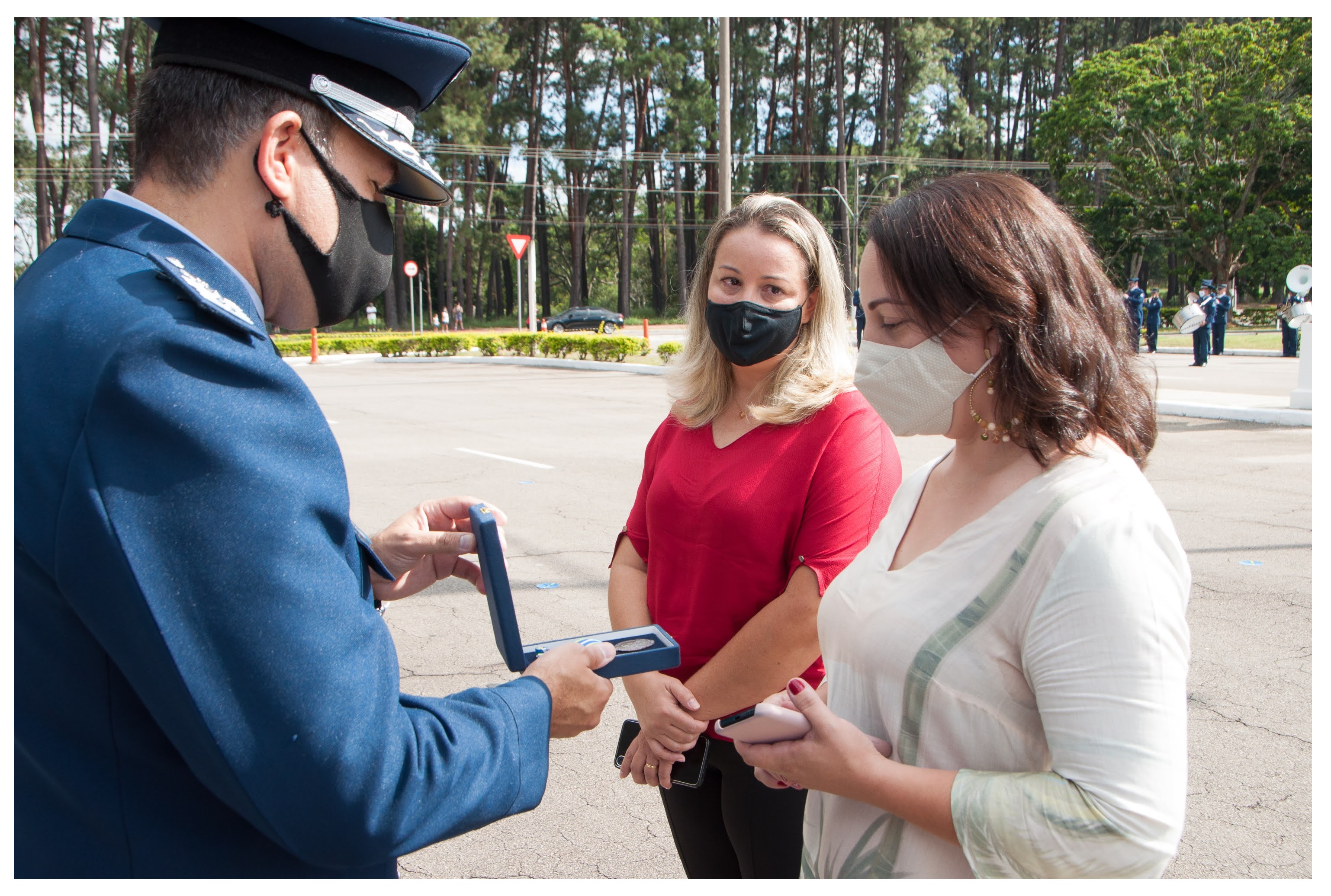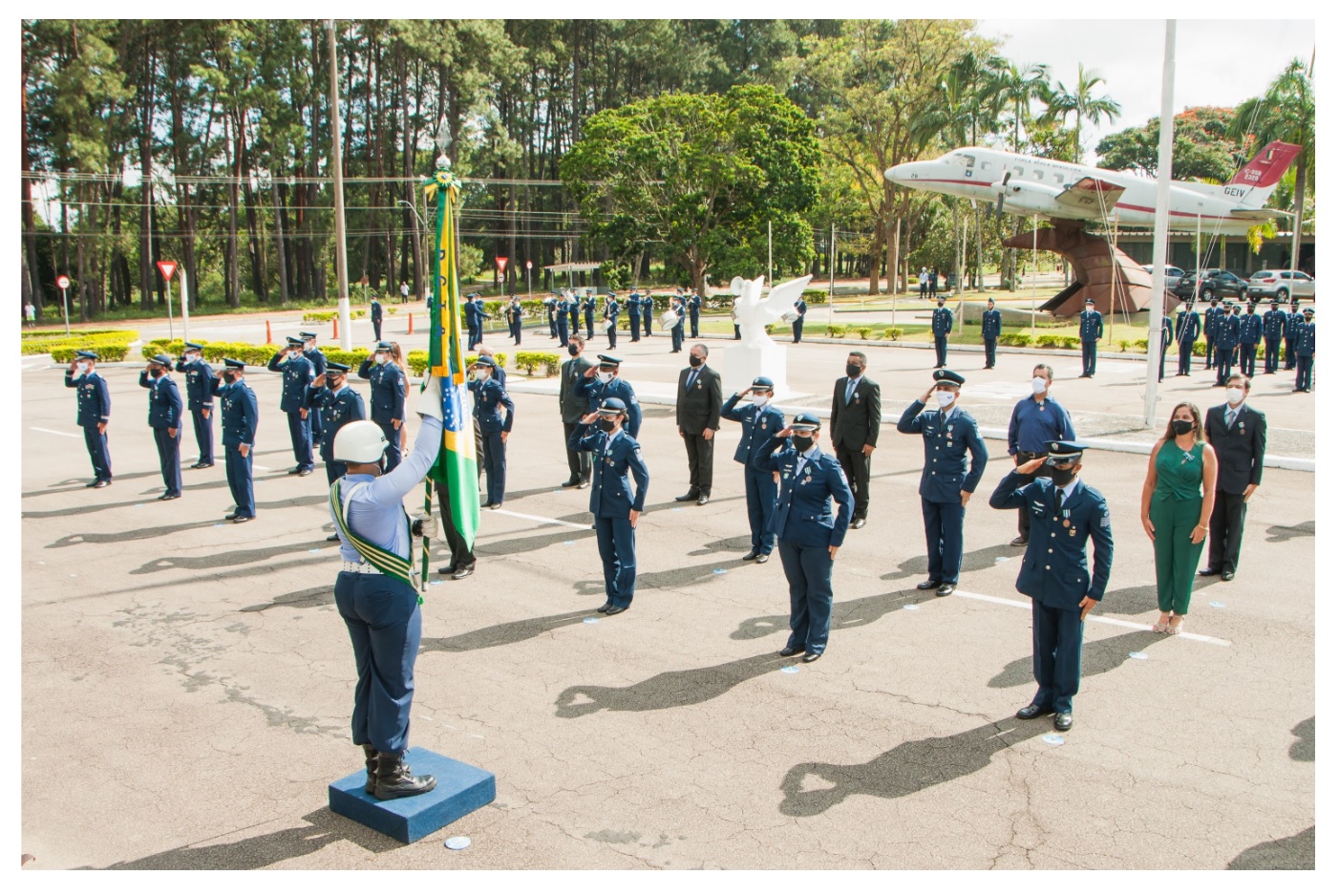 Representando os Especialistas de Aeronáutica da Guarnição de Aeronáutica de São José dos Campos (GUARNAE-SJ), encontram-se na tribuna de honra o Coronel Especialista em Comunicações Alexandre Camacho Coelho e o Suboficial Especialista em Eletricidade Niufran Palandi de Oliveira, Oficial e Graduado Especialistas mais antigos do Campus do DCTA.