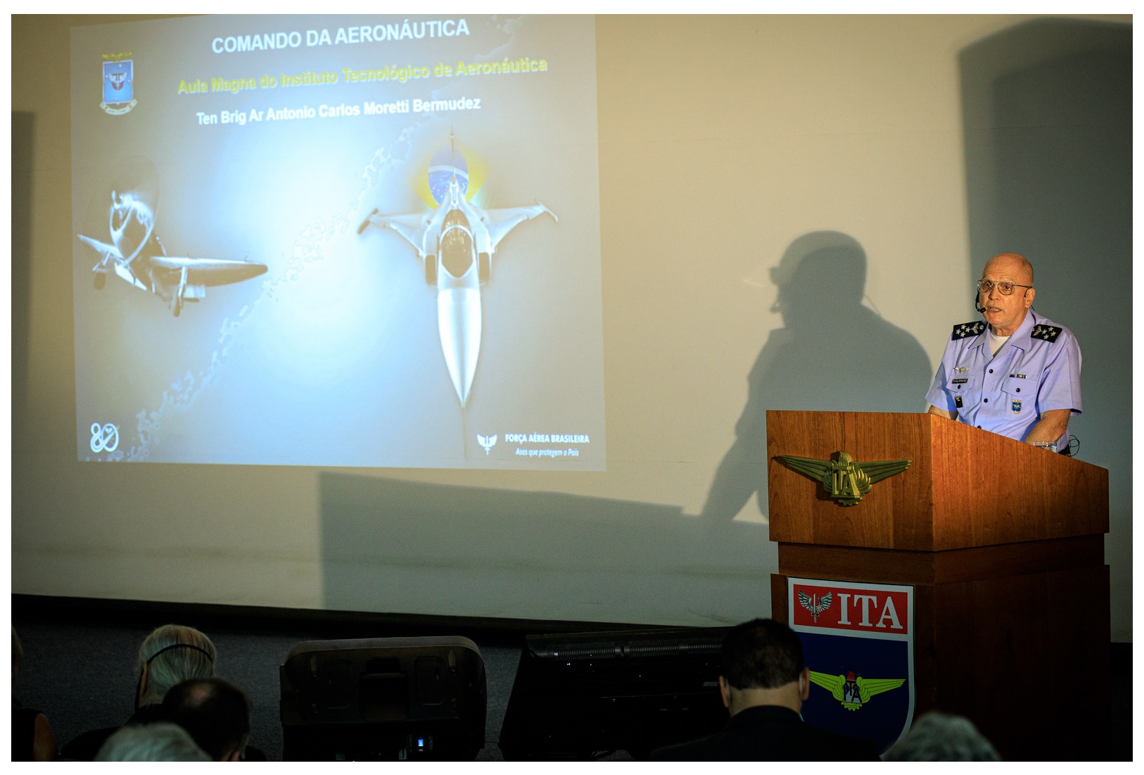 O Oficial-General expressou a honra em proferir a aula inaugural do curso aos profissionais destinados a extrapolar as fronteiras da inovação. “Com a mesma visão do Marechal do Ar Casemiro Montenegro Filho, temos o orgulho de vermos em vocês, prezados alunos do ITA, a fonte da excelência, um notável capital intelectual que sustentará a construção de um País mais próspero e justo. A Nação Brasileira confia em vocês”, finalizou.