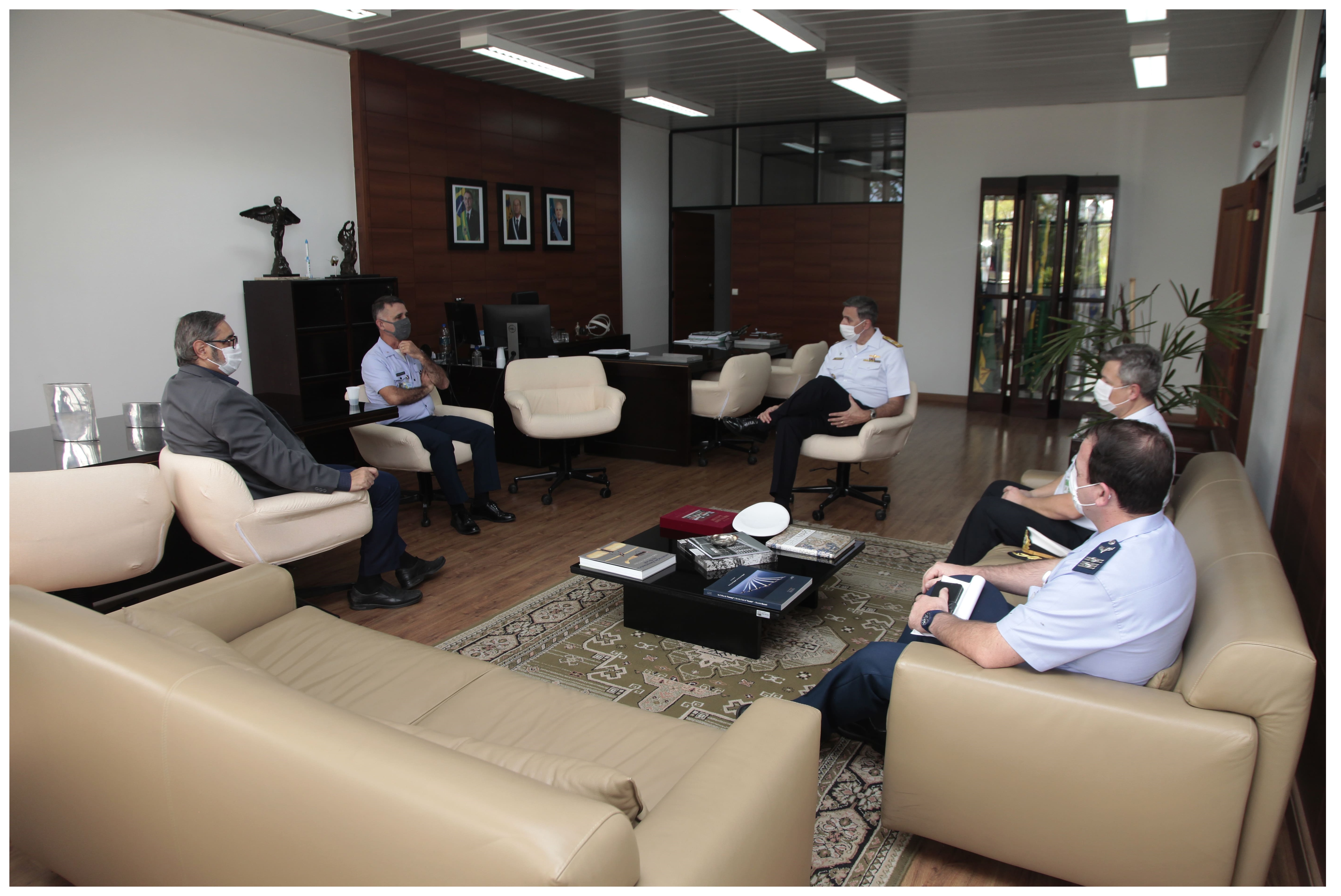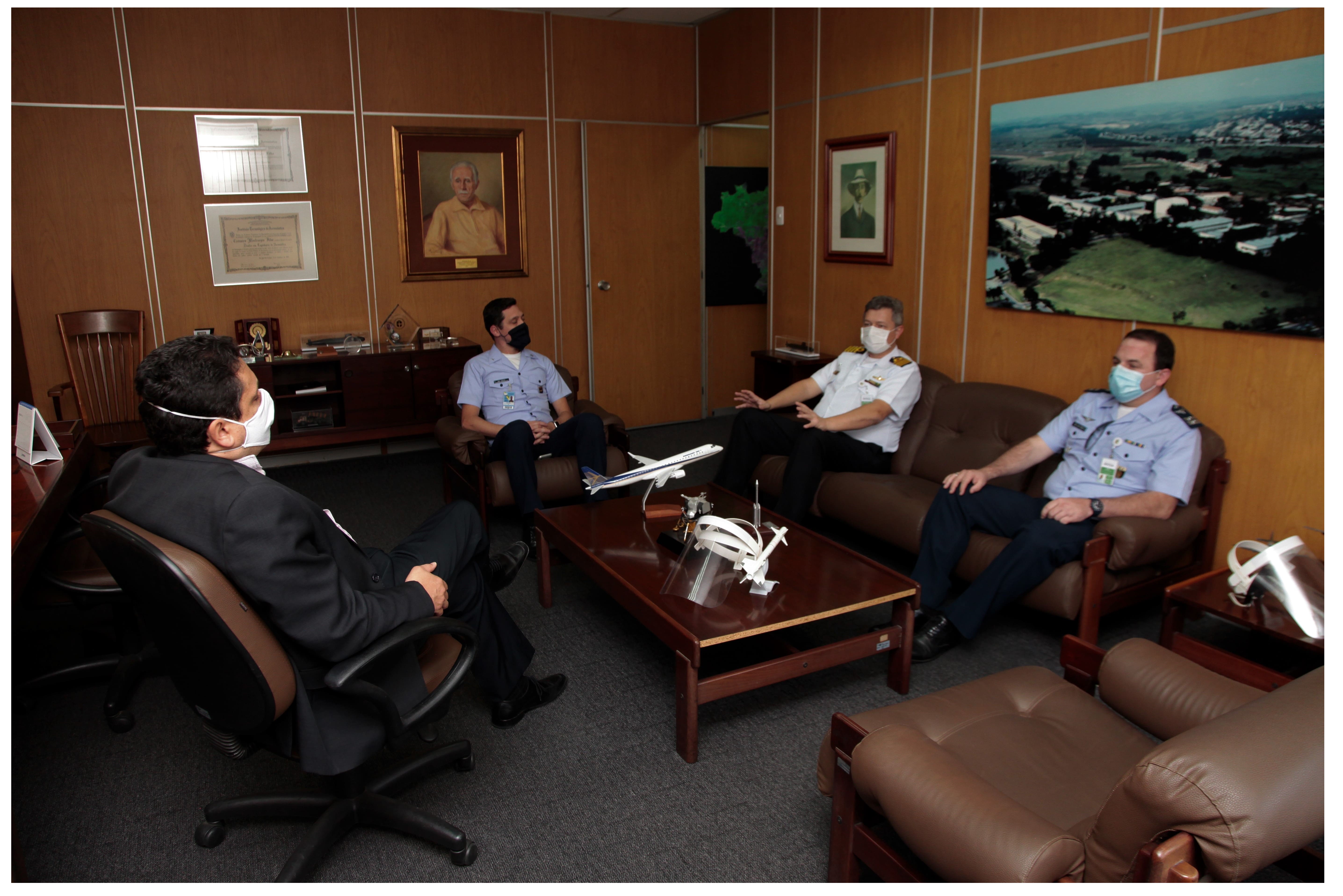 O Diretor-Geral do Departamento de Ciência e Tecnologia Aeroespacial (DCTA), Major-Brigadeiro do Ar Hudson Costa Potiguara recebeu, no dia 13 de agosto de 2020 (quinta-feira), o Diretor do Departamento de Ciência, Tecnologia e Inovação (DECTI), Contra-Almirante Sérgio Lucas da Silva e comitiva da Secretaria de Produtos de Defesa do Ministério da Defesa (MD). O propósito da visita foi conhecer a estrutura organizacional do Núcleo de Gestão da Inovação (NGI) do DCTA, suas potencialidades, e como o Sistema de Inovação da Aeronáutica (SINAER) poderá integrar ao Sistema de Gestão do Conhecimento Interoperável em CT&I (SGCICTI).