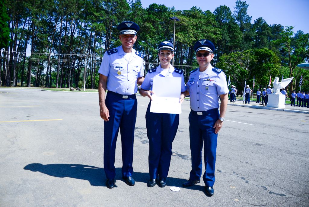 A Capitão Médica, Amanda Wieser Guimarães, foi homenageada, recebendo a premiação das mãos do Chefe da SDA do DCTA, Brigadeiro Daniel, e do Comandante do GSAU-SJ, Coronel Médico Luciano Martins Moreira.