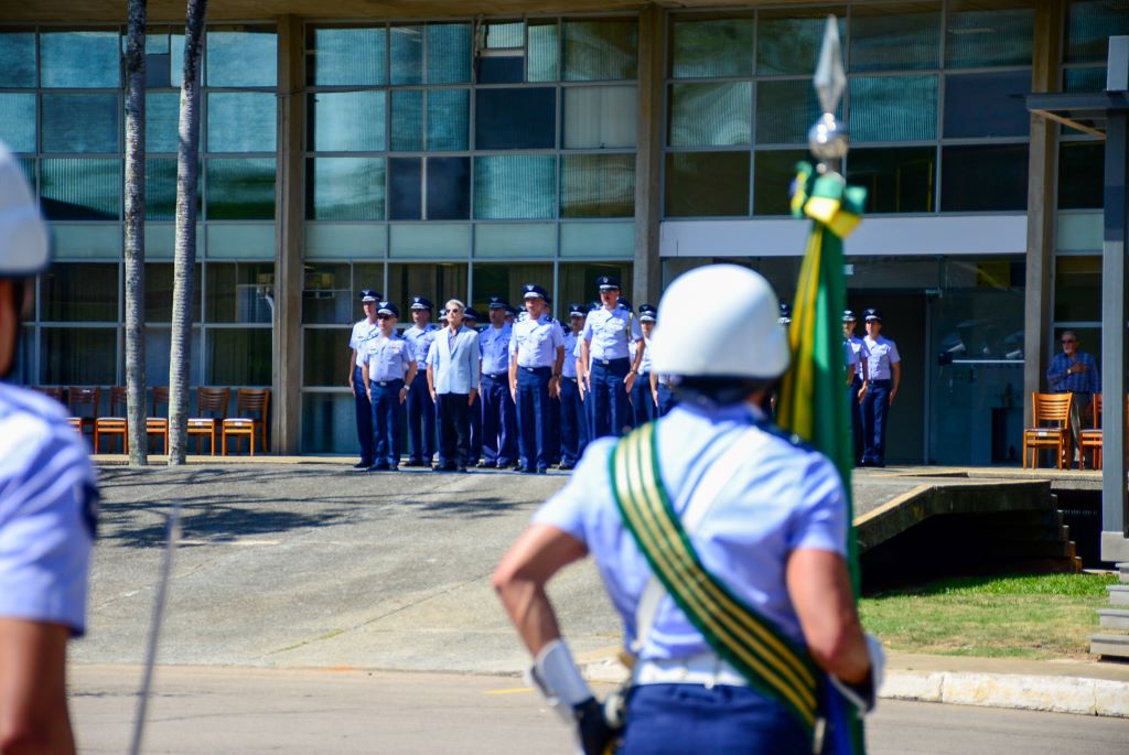 Ao final da cerimônia, o Diretor do IAE ocupou seu lugar de honra ao lado da Bandeira Nacional, enquanto a tropa desfilou em continência à Bandeira, ao som da canção Fibra de Herói.